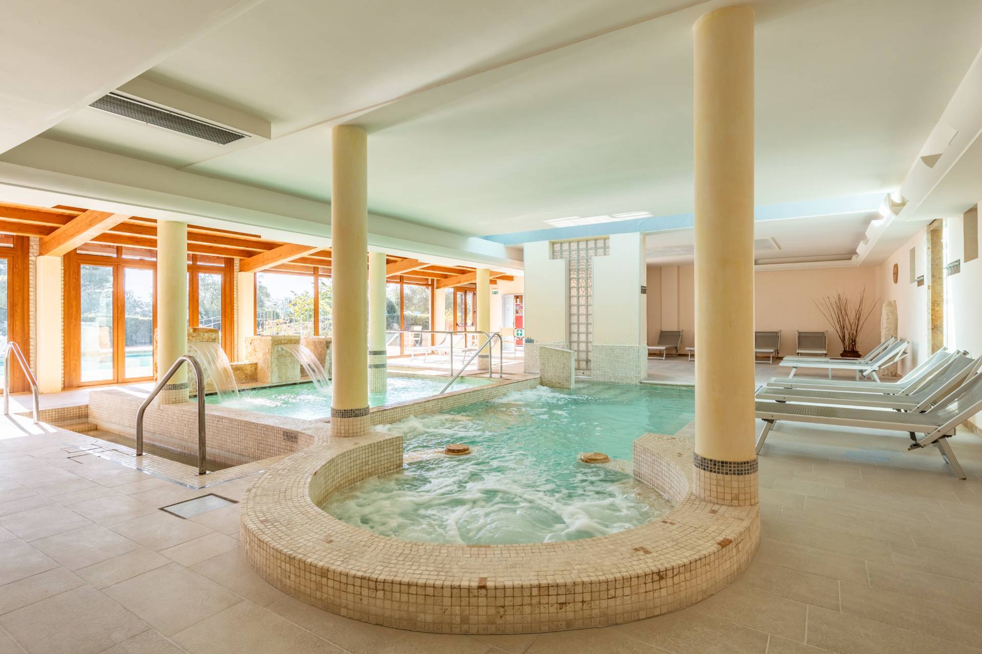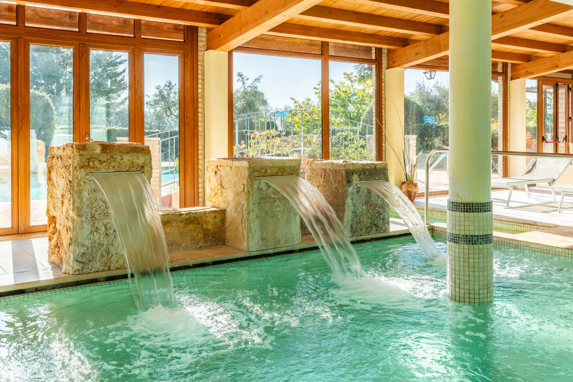 Questo resort esclusivo lunico in Umbria a godere di un Centro Termale servito da tre piscine, due delle quali scoperte ed una coperta, con temperatura dellacqua riscaldabile fino a 48 °C, dotate di innovative tecniche di idromassaggio e percorso kneipp, sauna finlandese, palestra, jacuzzi, bagno turco con aromaterapia, geyser e cascata di ghiaccio ideali per bagni rivitalizzanti e salutari trattamenti idroterapici o per una vacanza di completo relax.