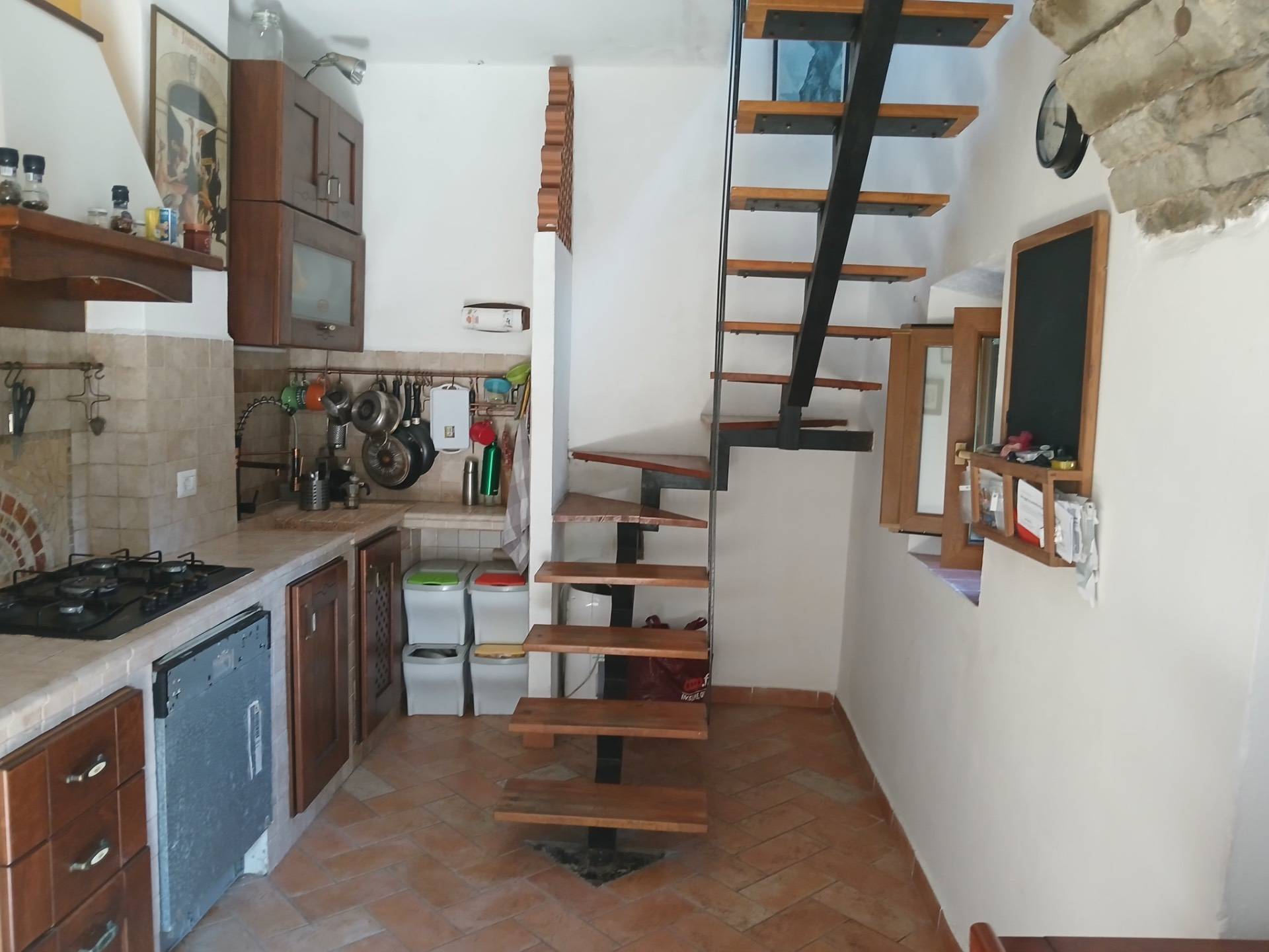 La casa si sviluppa su tre livelli per complessivi cinque vani. Al piano terra si trova un' accogliente cucina in muratura che ci introduce allabitazione; salendo al primo piano abbiamo un ampio soggiorno con camino e stufa a pellet che si apre verso il giardino posteriore di circa 70 mq e verso un grazioso spazio verde anteriore.