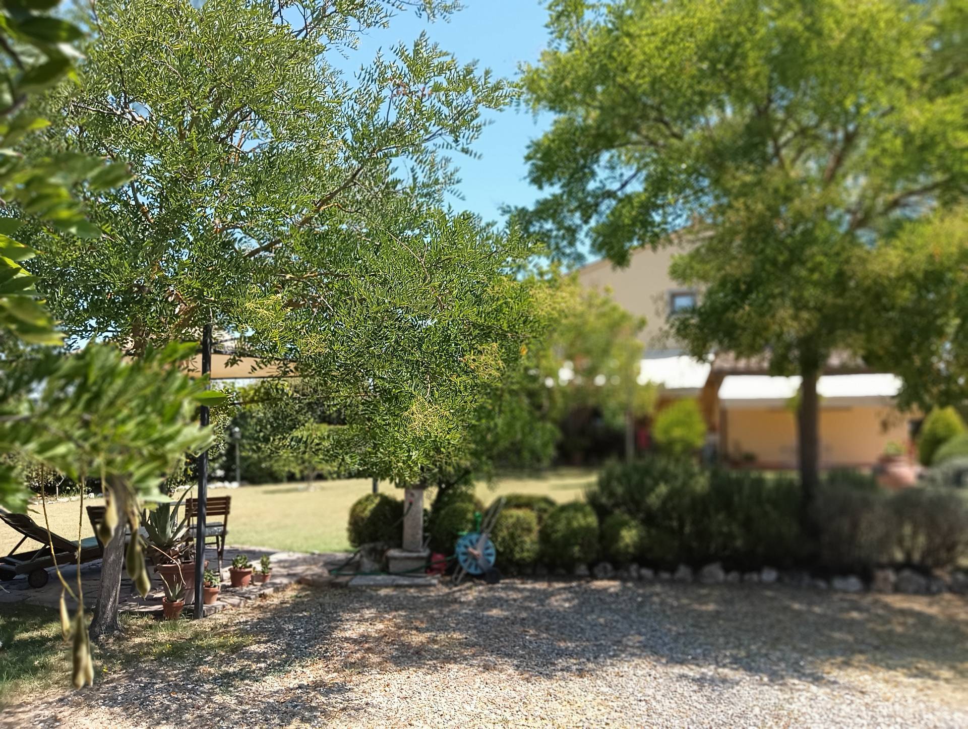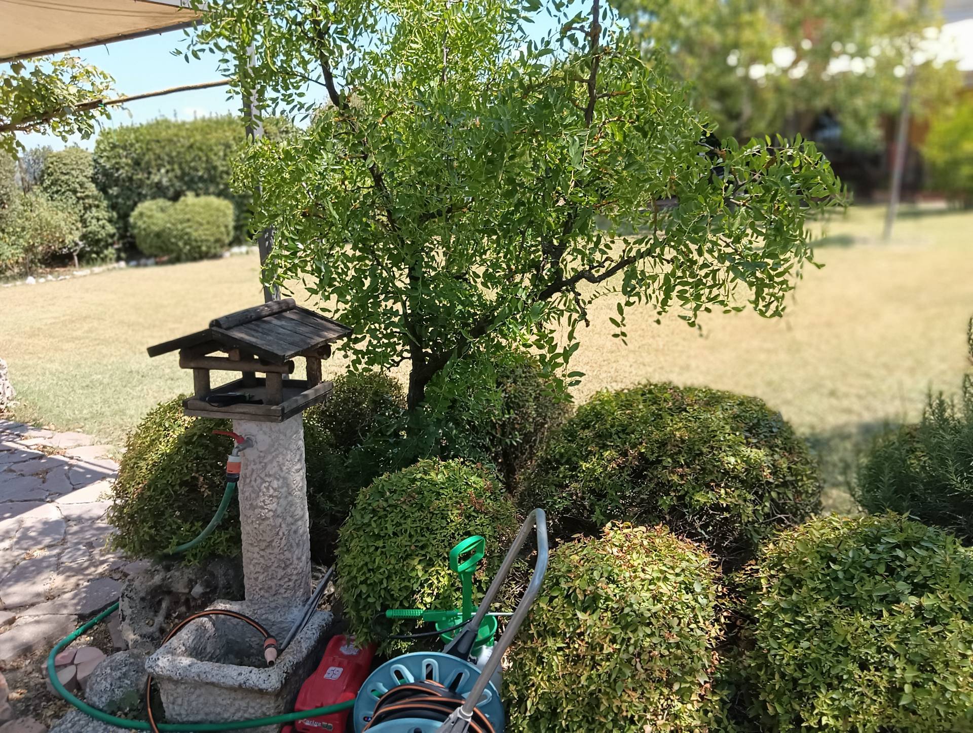 La superficie di 110 mq circa si dispone su due livelli con al piano terra ampia zona giorno con cucina separata, bagno di servizio, ripostiglio e vari accessi allampio resede ad uso esclusivo; al piano superiore vi sono 2 camere da letto e un bagno-wc. Il giardino esclusivo ha una superficie di circa 1200 mq con comodo accesso allarea verde condominiale, tutta la propriet interamente recintata e illuminata.