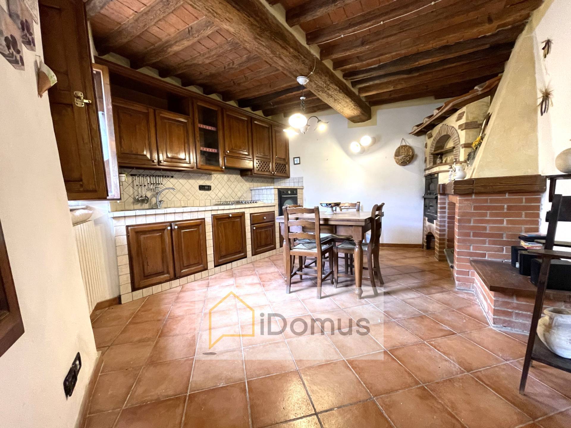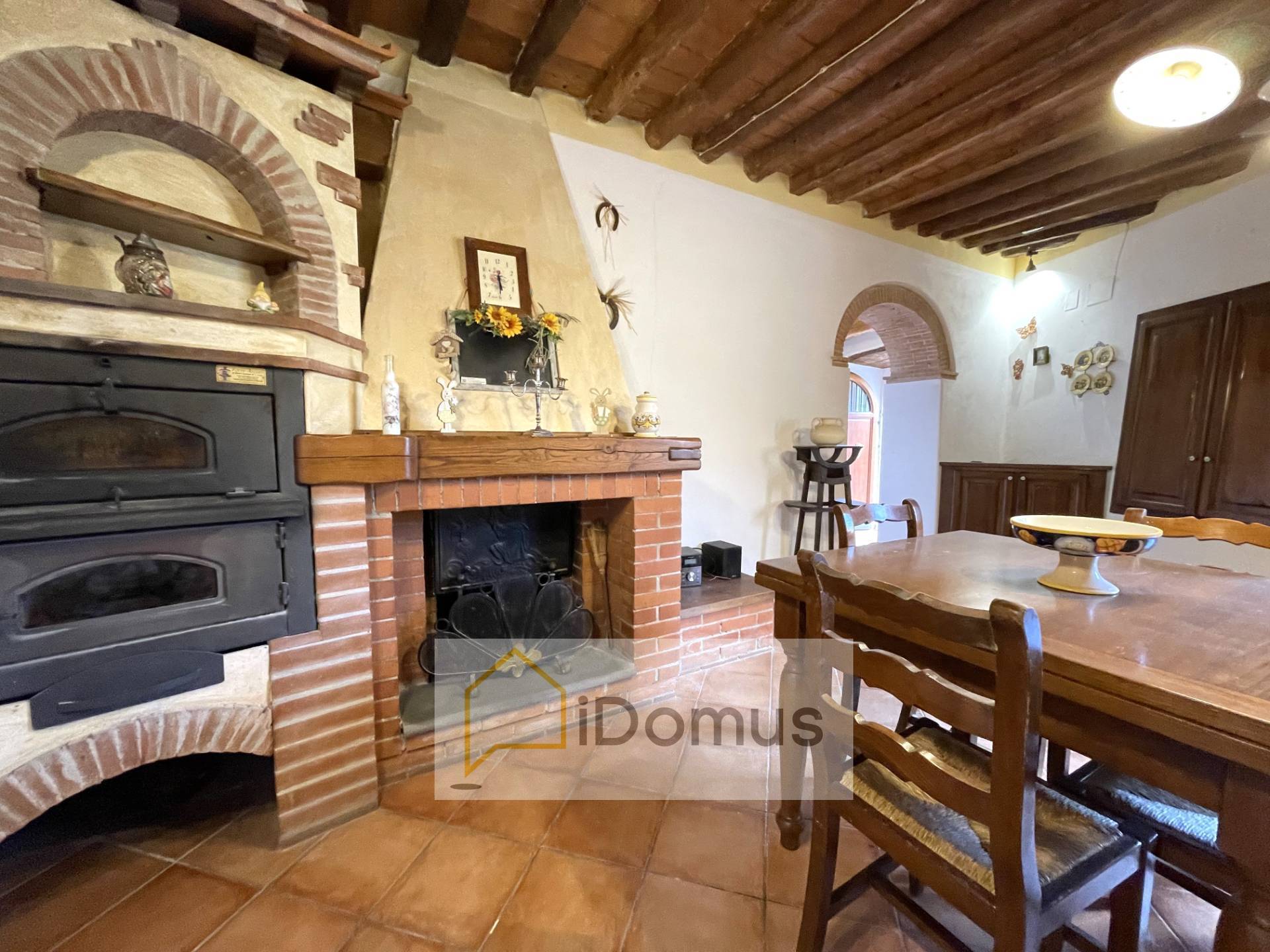 Piano terra, soggiorno, grande cucina con camino e forno, disimpegno, bagno e ampio locale pluriuso/lavanderia.