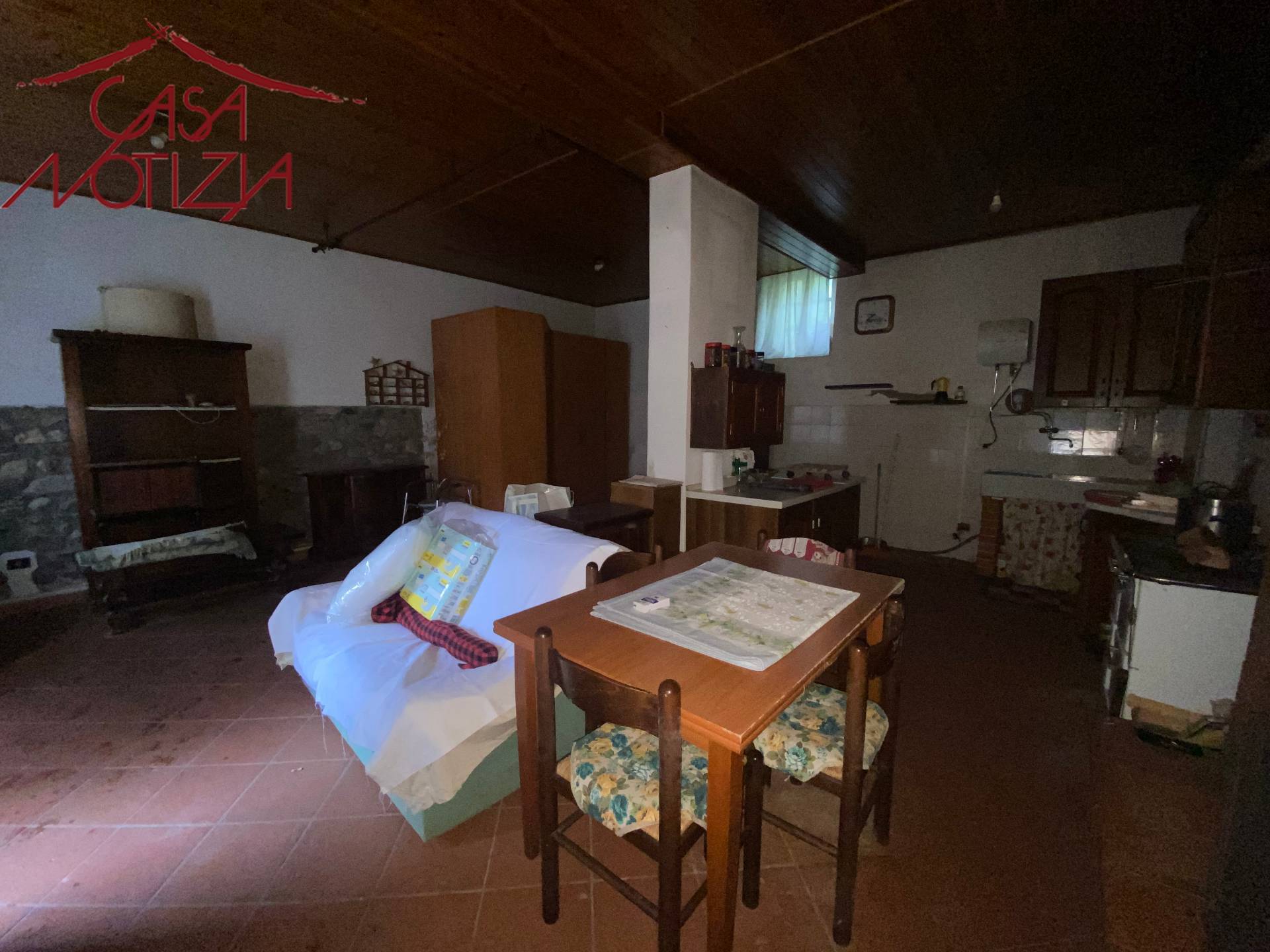 L'abitazione principale una casa centrale in pietra composta da ingresso in ampio soggiorno (ex mulino) con camino, da una porta interna possibile accedere anche al garage con bagnetto di circa 15 mq che ha l'ingresso anche indipendente.