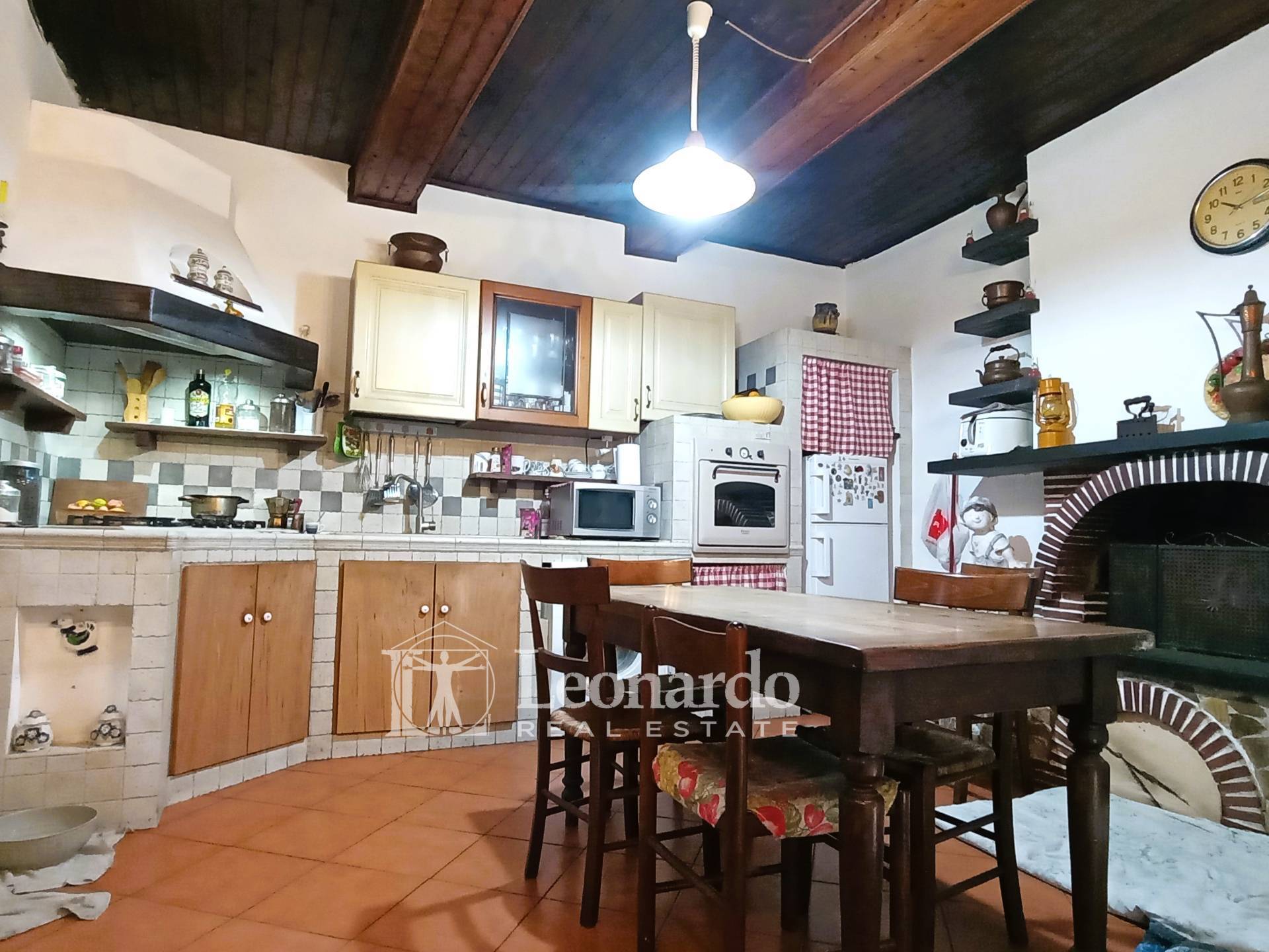 E' composta al piano terra da ampio salone di ingresso, vano disimpegno con una bella scala in pietra e ferro battuto e dalla cucina abitabile con caminetto.
