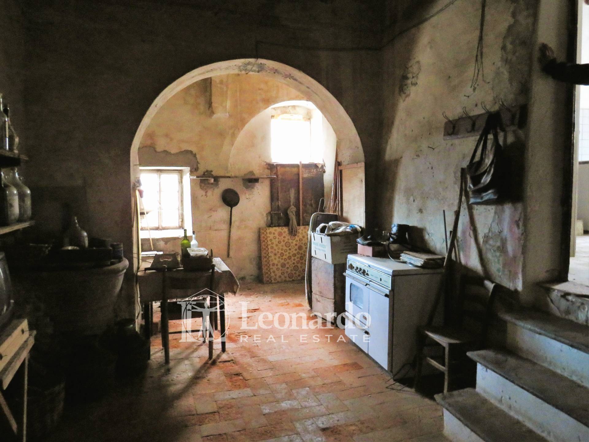 L' abitazione principale composta al pianterreno da grande cucina con camino e ripostiglio sottoscala; dalla cucina o dal retro della casa si accede alla spaziosa cantina dotata anch'essa di camino.