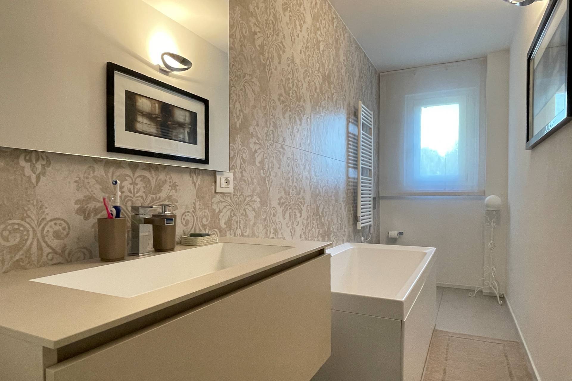 All'esterno della residenza troviamo un bel portico in legno dove poter cenare con ospiti e amici oltre allo scoperto esclusivo molto ben curato di circa 80 mq. con accesso carrabile e possibilit di doppio parcheggio auto. Limmobile, dagli ambienti raffinati e curati in ogni dettaglio e dall'elevata efficienza energetica, stato completamente ristrutturato nel 2016 con lutilizzo di materiali di pregio e qualit, tra cui un raffinato parquet a listoni.