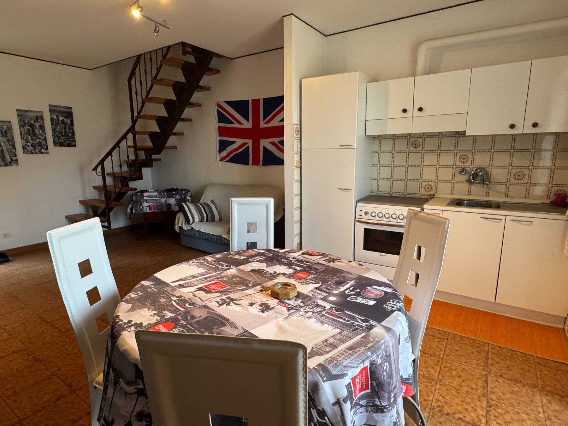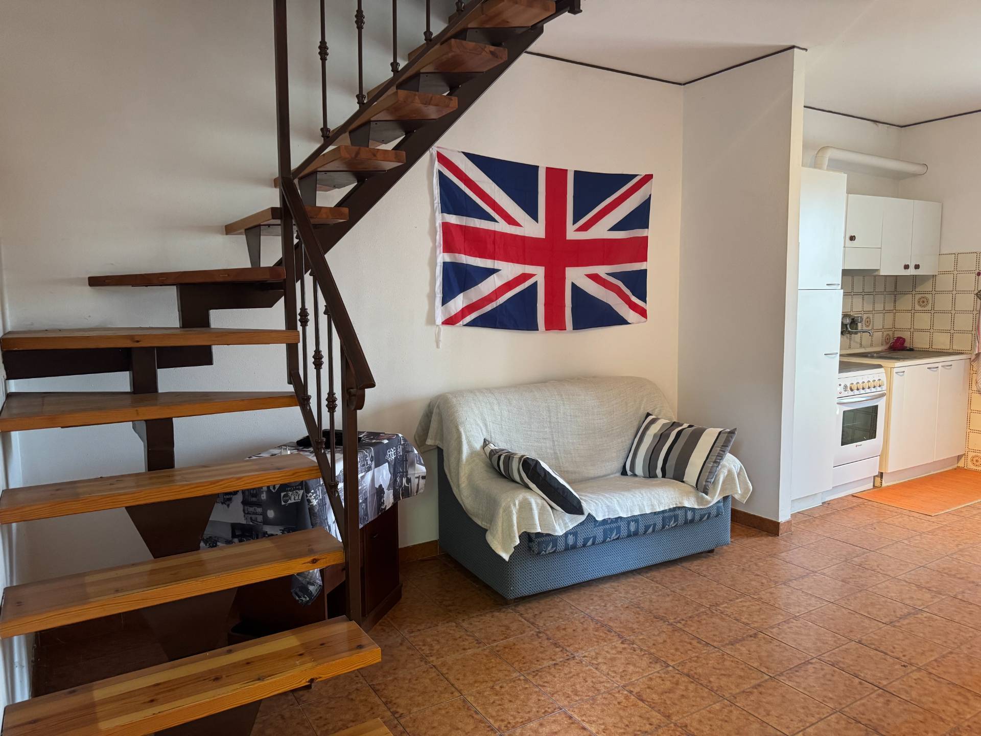 Labitazione si sviluppa al piano primo con un ampio e luminoso soggiorno dotato di angolo cottura, caratterizzato da accesso diretto al balcone esposto al sole, perfetto per momenti di relax.