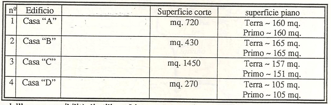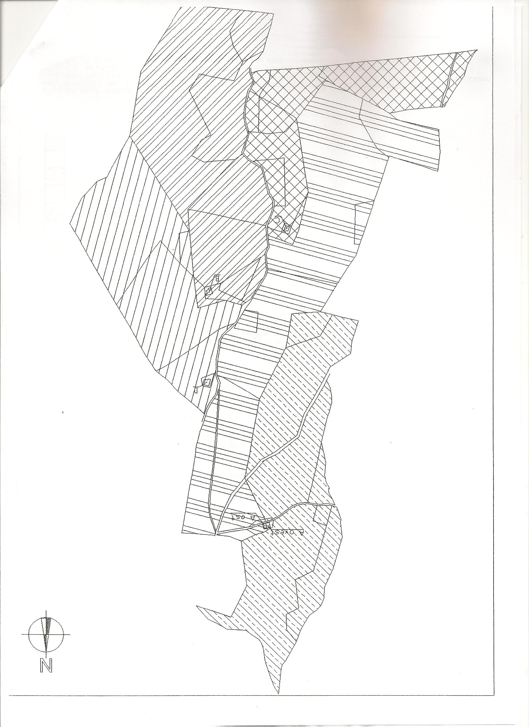Appezzamento di terreno di circa 49 ha, all'interno della confluenza a "V" di due piccoli rii, interamente destinato a bosco, percorso da numerosi piccoli sentieri; sulla zona pi alta, la cresta di tale propriet, troviamo radure pianeggianti, che ospitano quattro case coloniche di notevoli dimensioni: immobile contraddistinto dalla lettera A : circa mq 320 con corte di circa mq 720, casale B: mq 330 su corte di 430 mq circa, casale C: mq 308 con corte di circa mq 1450 e casale D di 210 mq su corte di 270 mq. I casali necessitano di un importante lavoro di ricostruzione sia delle pareti che dei tetti.