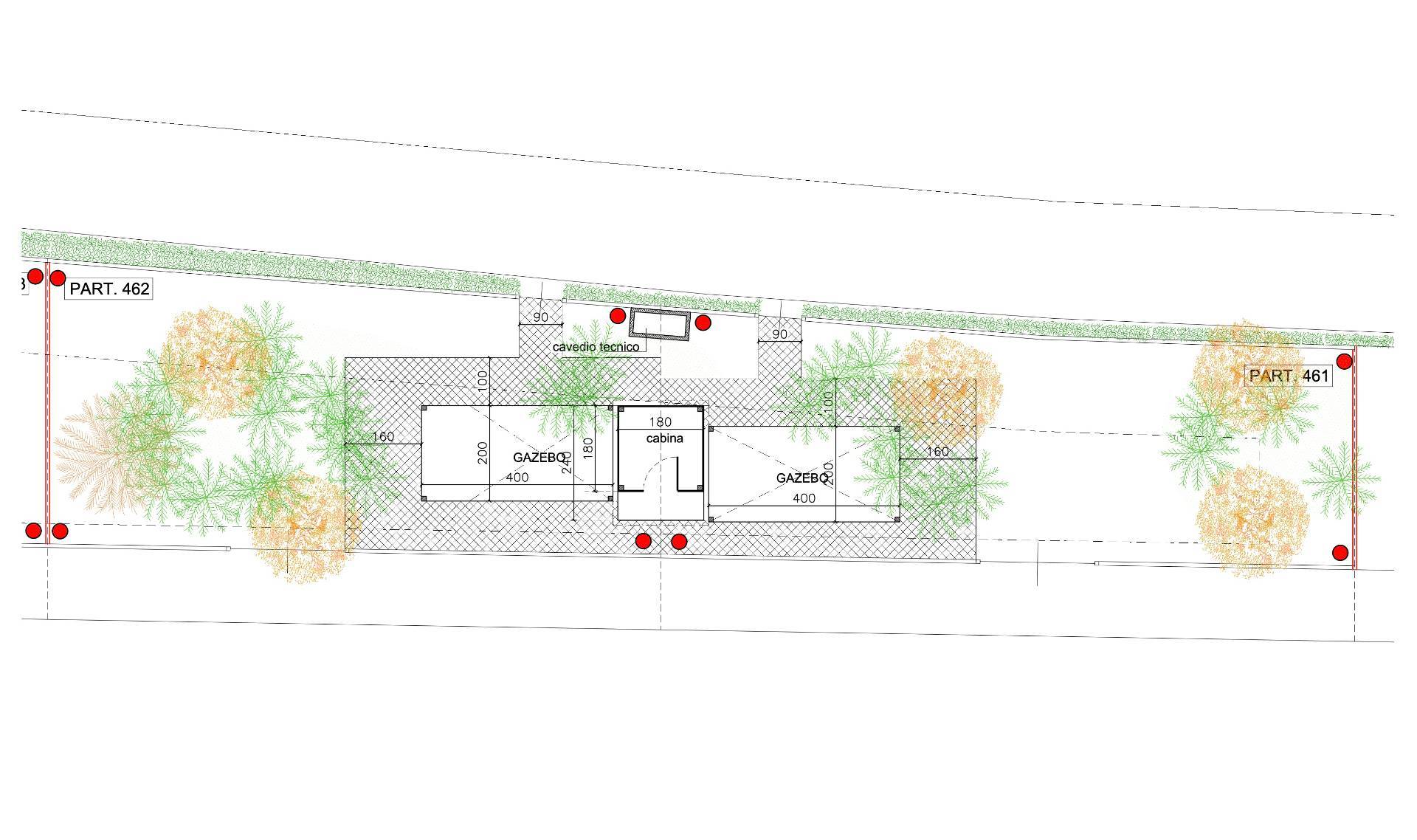 Sull'appezzamento di terreno in oggetto possibile realizzare una cabina delle dimensioni di 1,80 x 1,80 metri oltre due gazebo ciascuno di 8 mq: totale superficie coperta sul lotto: 19,24 metri.