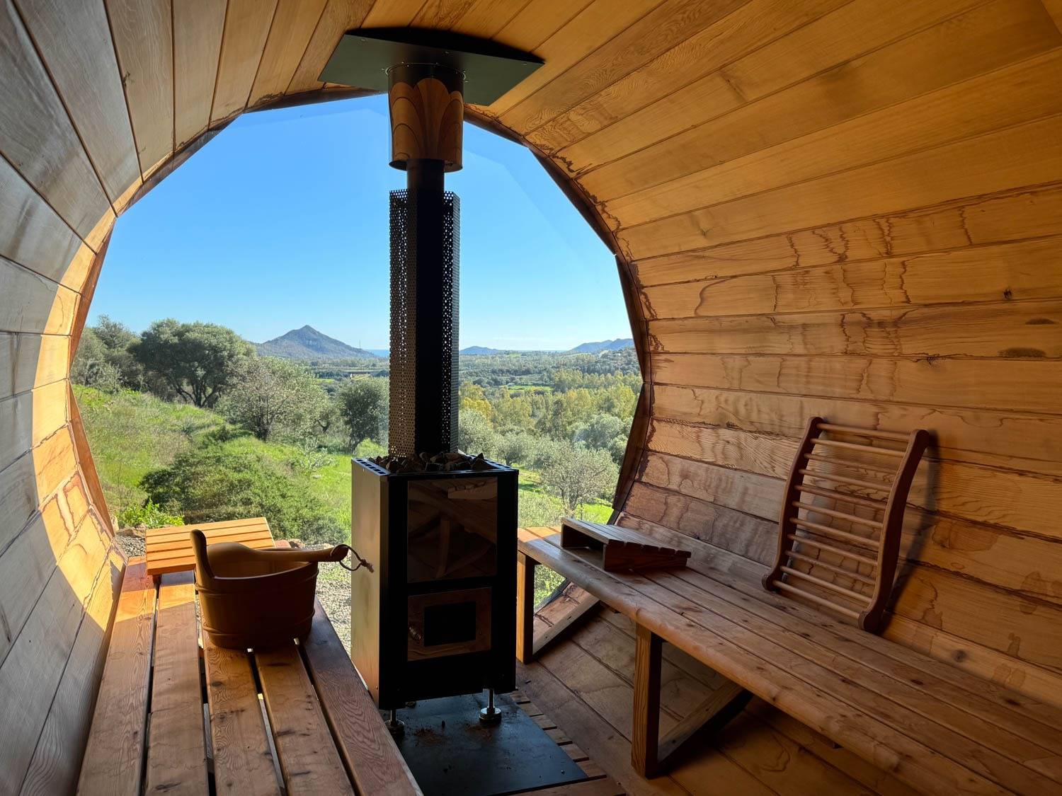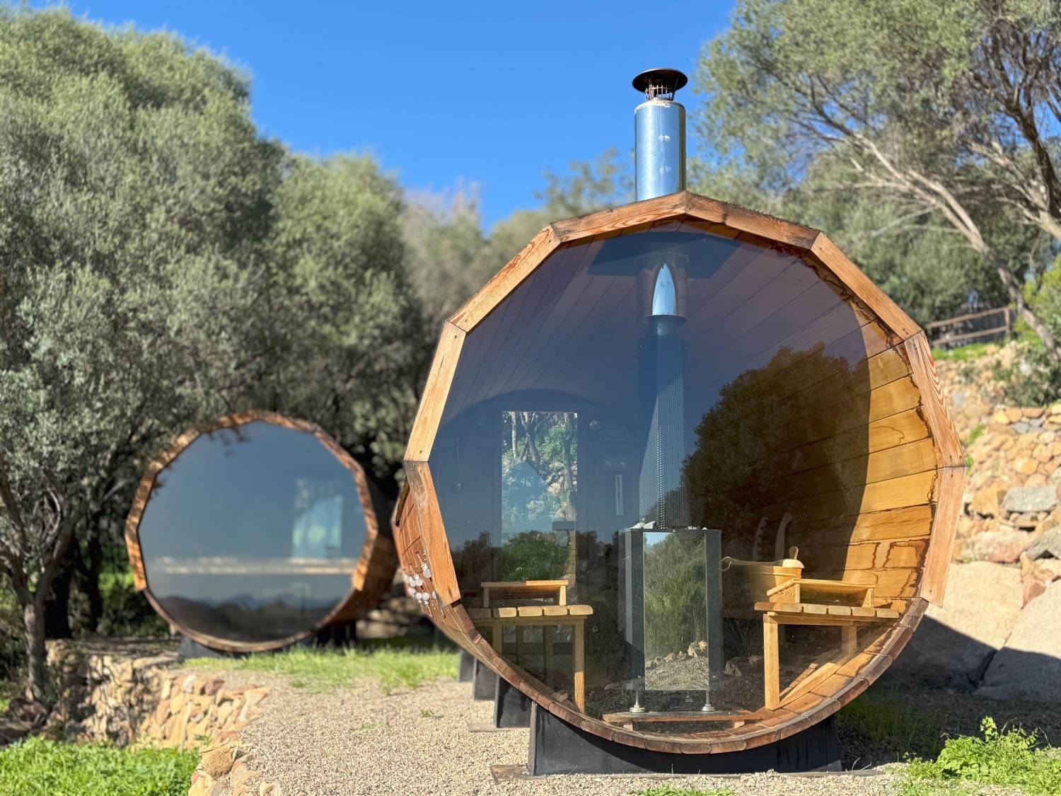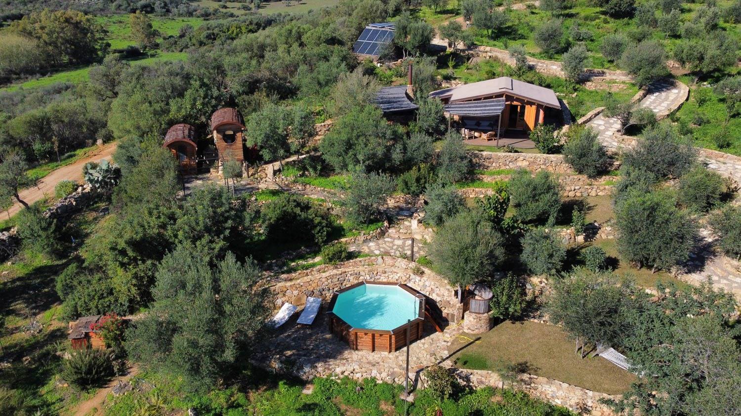Strutture mobili: 6 tende grandi beduine in cottone, Dome da 11metri, Sauna, Relax Room; spazio Yoga (piazzola pi struttura in legno); piazzole per tende con impianto elettrico presente; piscina di 6 metri diametro con pompa di calore alimentata da impianto fotovoltaico, n. 4 Pergole, n. 1 Forno e n.1 Barbecue.
