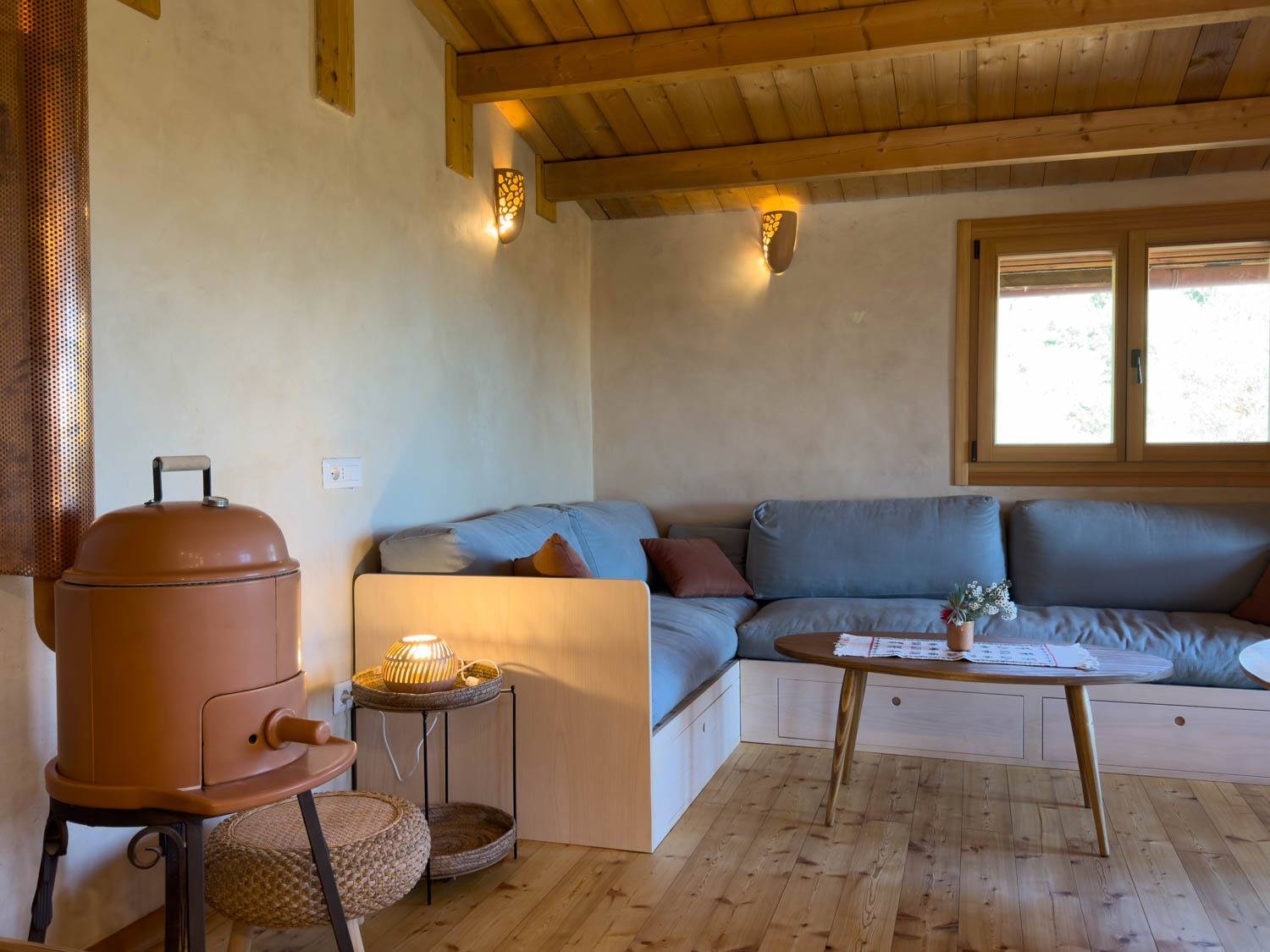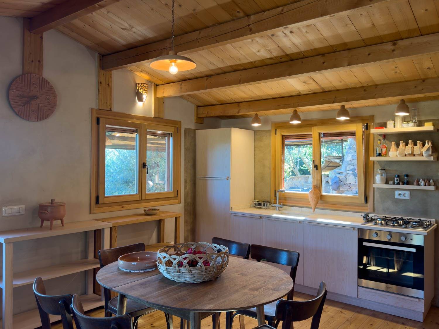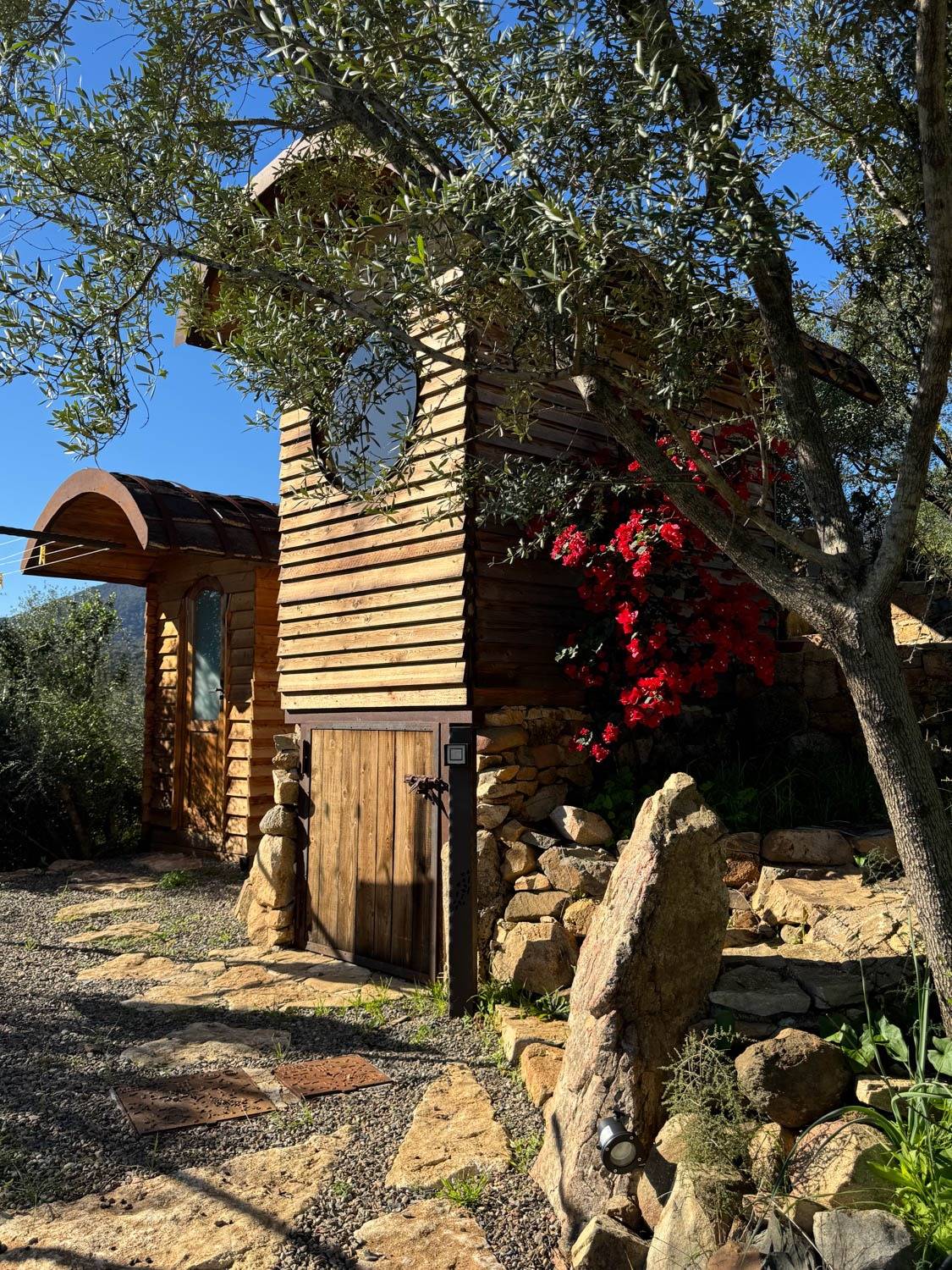 Strutture fisse costruite in bioedilizia: due depositi, due bagni, una casetta di 30 mq con bagno e ampia sala da pranzo con relativi accessori( lavatrice, lavastoviglie, forno interno e riscaldamento con Boiler 3 x; n.6), docce esterne; cerchio in pietra di 150 mq con pavimento in terra battuta; doccia Africana in Terra e canne.