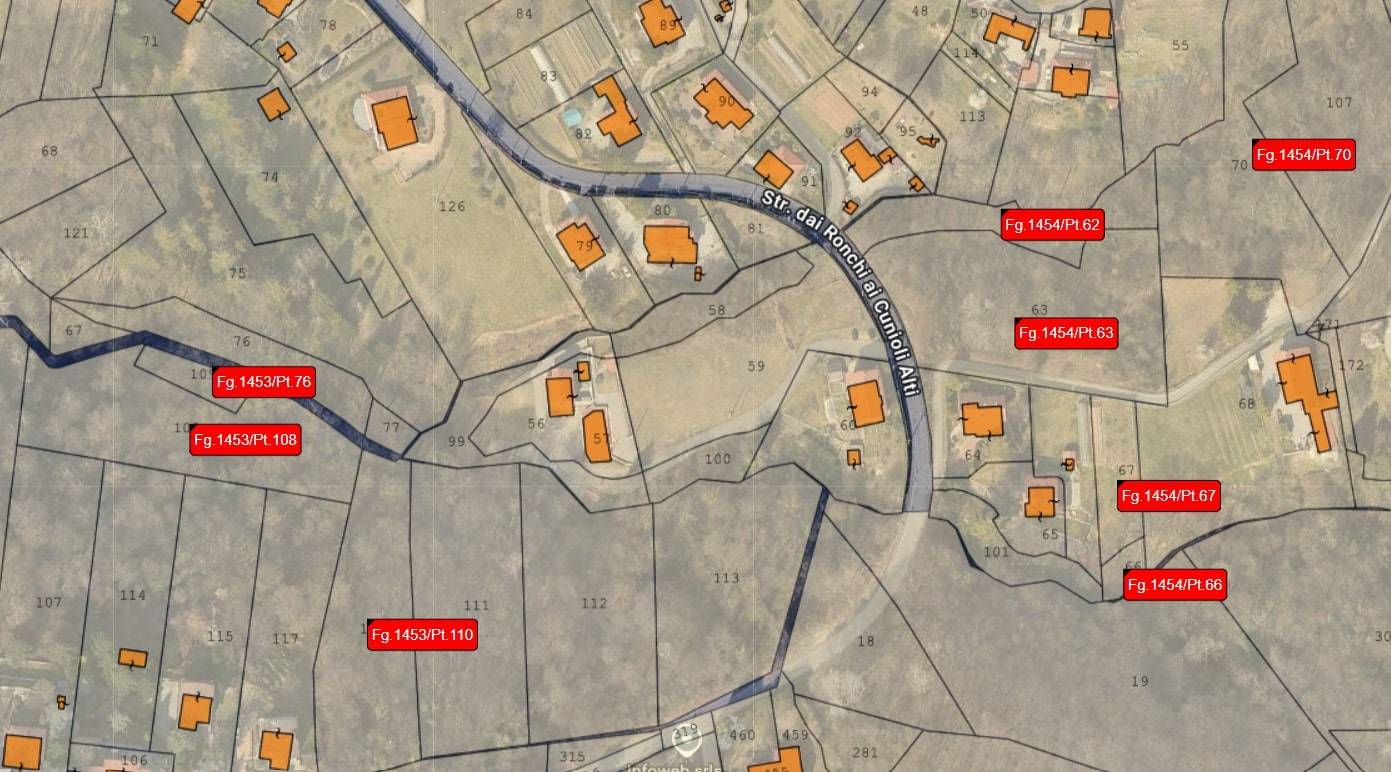 Vendesi diversi Terreni Agricoli per una superficie totale di circa mq 18.000 ai bordi di Strada dai Ronchi ai Cunioli Alti. Possibilit di acquistarli sia separatamente che in blocco. Contatta l'inserzionista