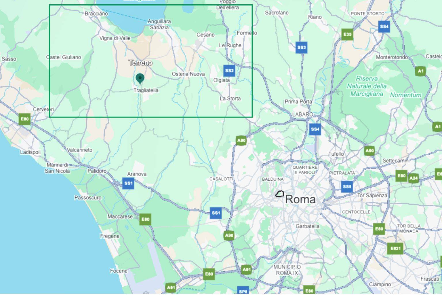 Il terreno perfettamente inserito nel paesaggio naturale, a pochi minuti dal Lago di Bracciano, e dista solo 5 km dalla stazione ferroviaria con collegamenti diretti verso Roma. La vicinanza a Via Cassia e Via Aurelia garantisce inoltre una rete viaria fluida e ben strutturata.