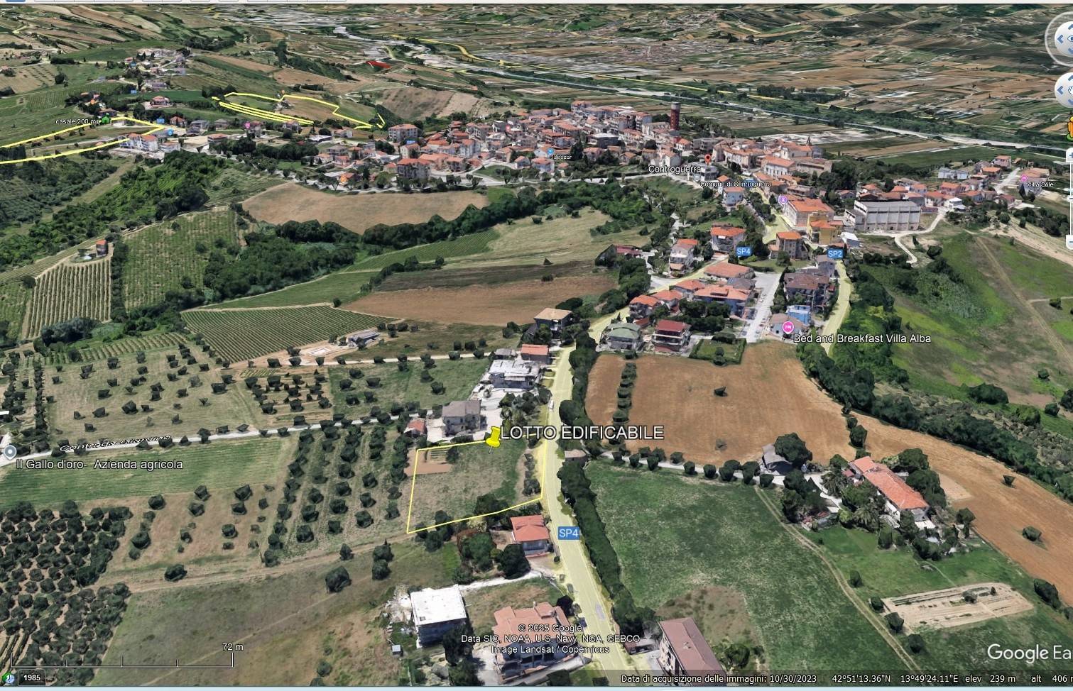 DESCRIZIONE: terreno ubicato a Controguerra a 9 km dal mare di Alba Adriatica, lotto delle dimensioni di mq 2240 con possibilit di realizzare 1500 mq di costruito, ampia vista sul Gran Sasso, sulla Maiella e sul mare. CAMPI DI IMPIEGO: ottimo per la realizzazione di una villa di prestigio, o per costruttori che vogliano realizzare pi villette a schiera.