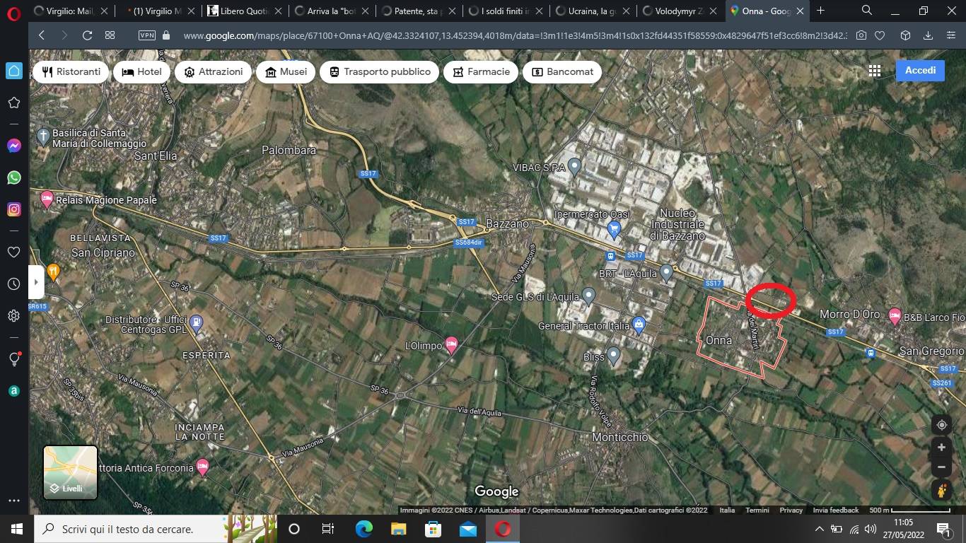 Vendesi lotto di terreno di 28.163 mq in zona strategica con fabbricato, posta al crocevia della S.S. 17 all'altezza del Nucleo Industriale di Bazzano nel Comune di L'Aquila, a poca distanza dal centro urbano.