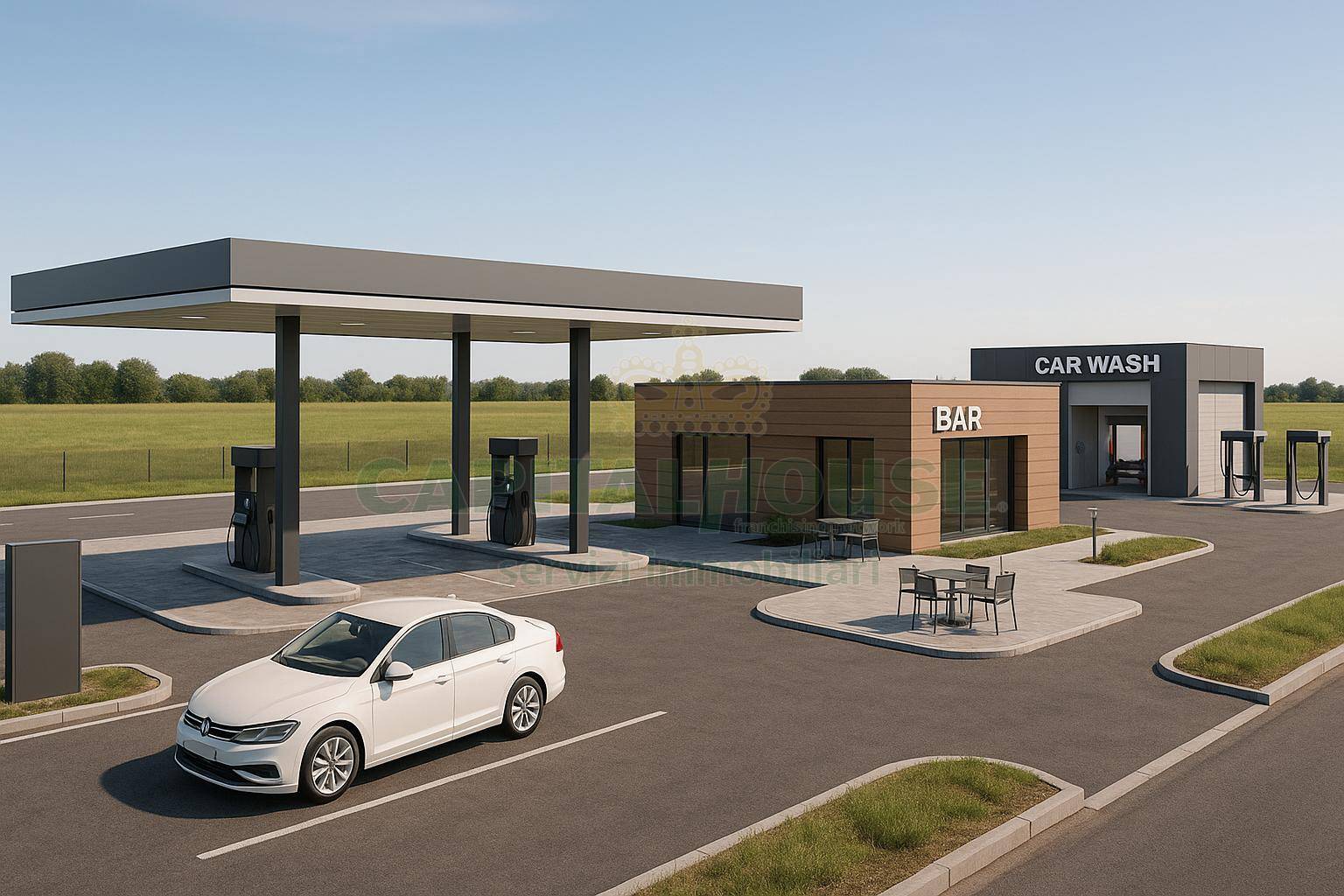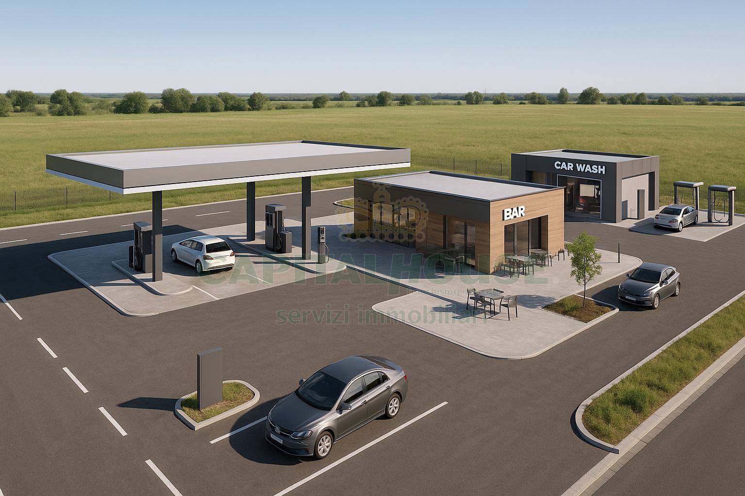 Il lotto accompagnato da permessi approvati per la realizzazione di unimportante area di servizio comprensiva di: Distributore di carburanti (benzina, diesel, GPL, metano) Autolavaggio per auto e camion Bar e tabaccheria In alternativa, possibile edificare un capannone industriale fino a 1.200 m, in linea con la destinazione urbanistica artigianale/industriale.