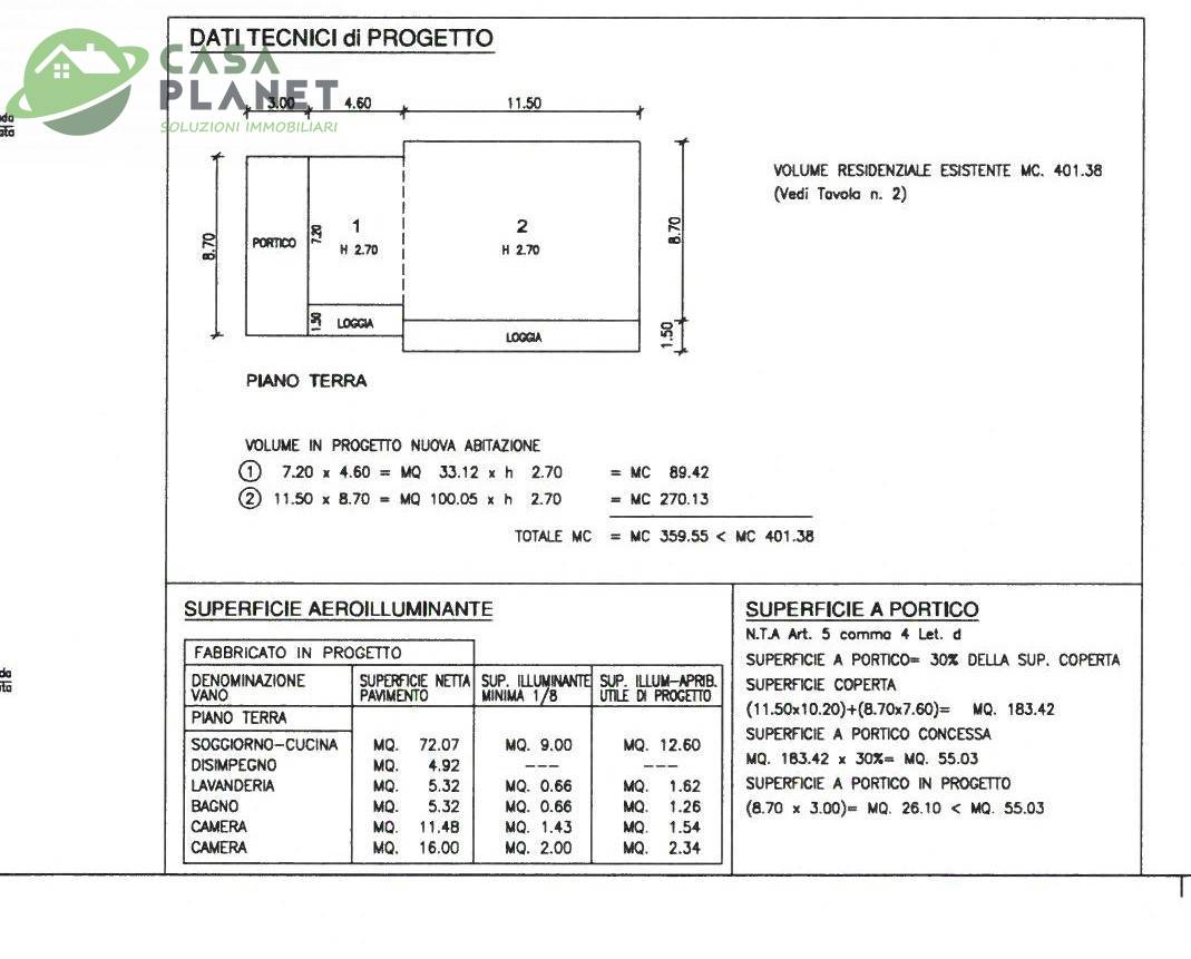 Progetto approvato ed oneri pagati per costruire una singola tutta su un piano, oltre a mansarda, con soggiorno con cucina a vista di 72 mq., disimpegno che da accesso ad una camera matrimoniale da 16 mq., camera doppia, bagno, lavanderia e mansarda di 82 mq. (altezza sotto trave m. 2,33). Resta una piccola porzione di Barchessa di propriet che si potr ristrutturare.