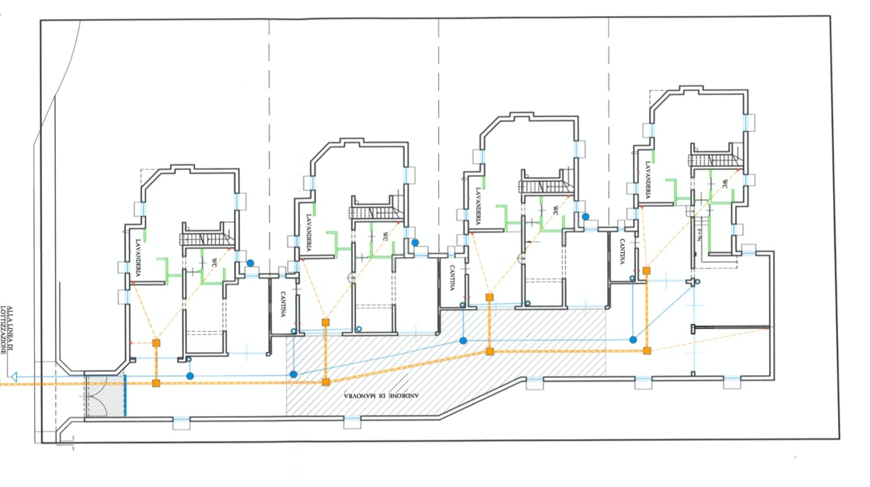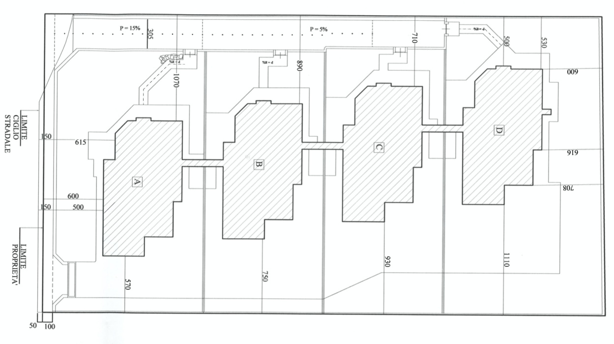 Il lotto di terreno di circa 1680 mq e il progetto prevede la realizzazione di quattro unit abitative con piano interrato destinato a rustico/garage; piano terra abitativo e piano sprimo con soffitta e terrazzo.