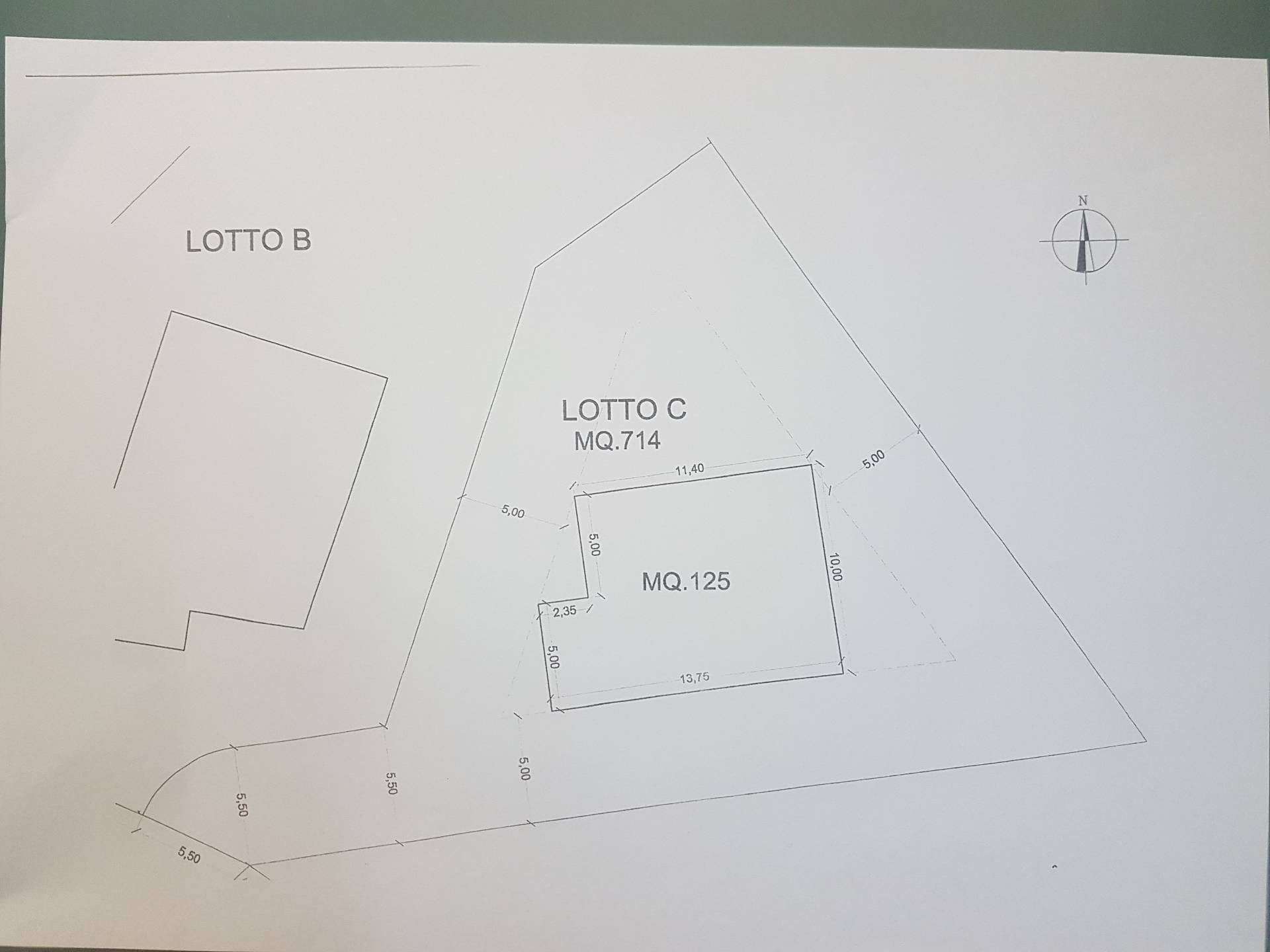 Il terreno ha configurazione geometrica triangolare leggermente scosceso ed raggiunto da linea elettrica, telefonica, acqua, fogne e metano.