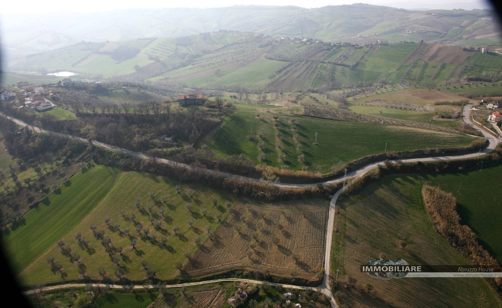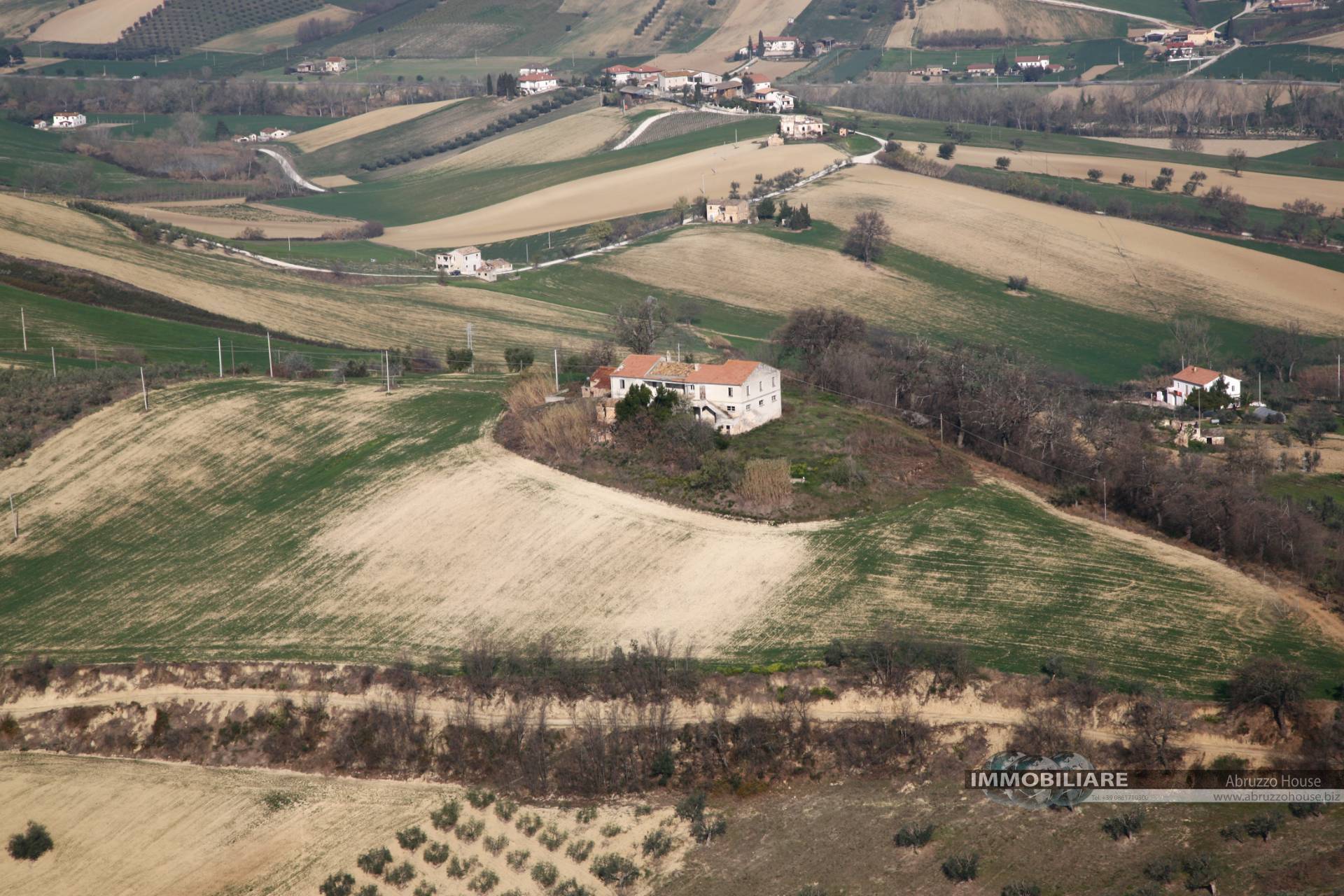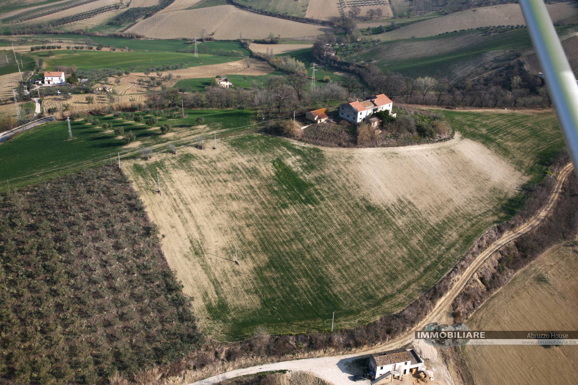 L'area edificabile ha una consistenza di circa 60.000 mq con sovrastante casale rustico collabente composto da due appartamenti con stalle e rustici attigui.