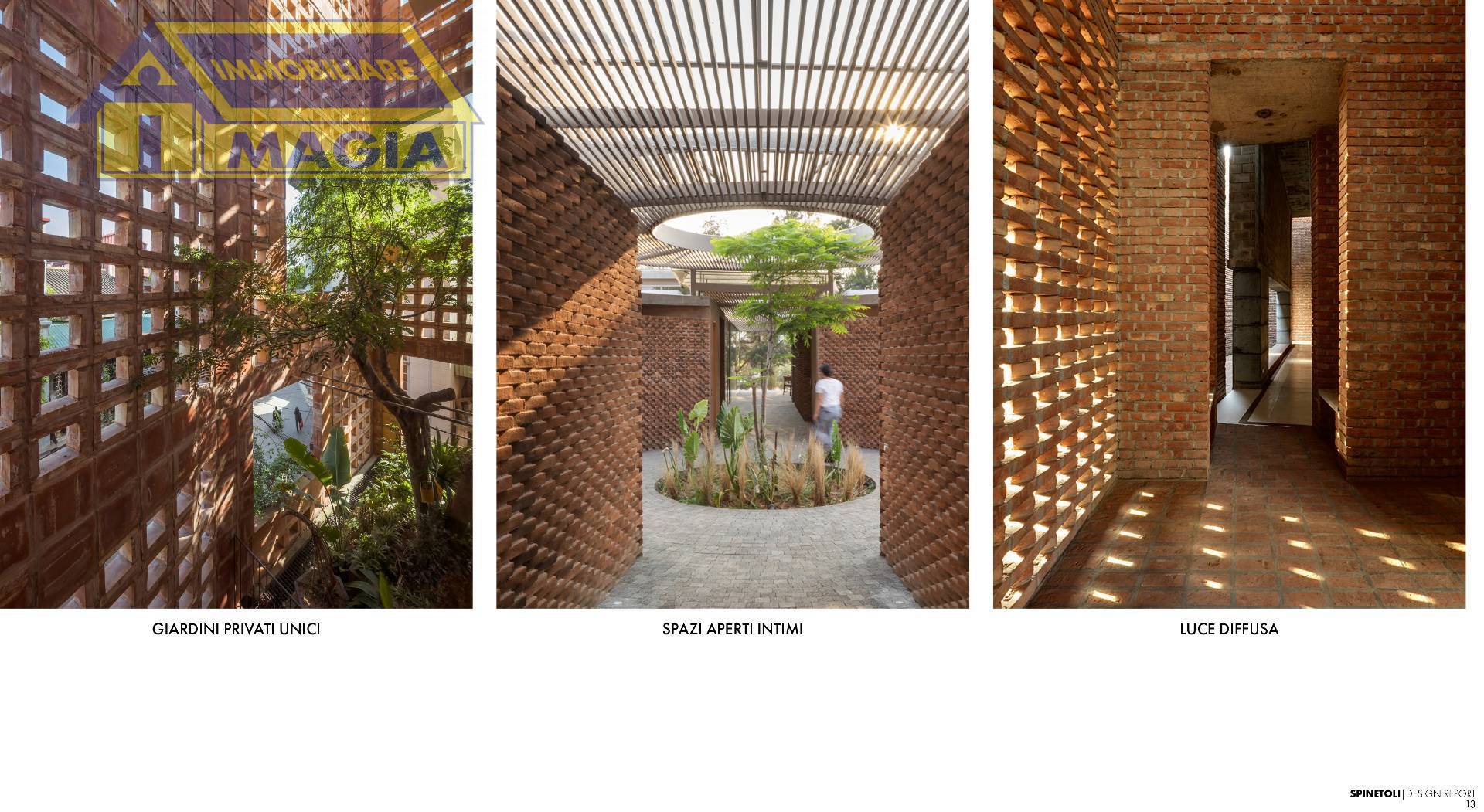 Il progetto si presenta in 6 villette mono o bifamiliari, disposte in modo da creare il meno possibile delle visuali dirette tra loro. Una sfumatura di colori graduali le rendono uniche.