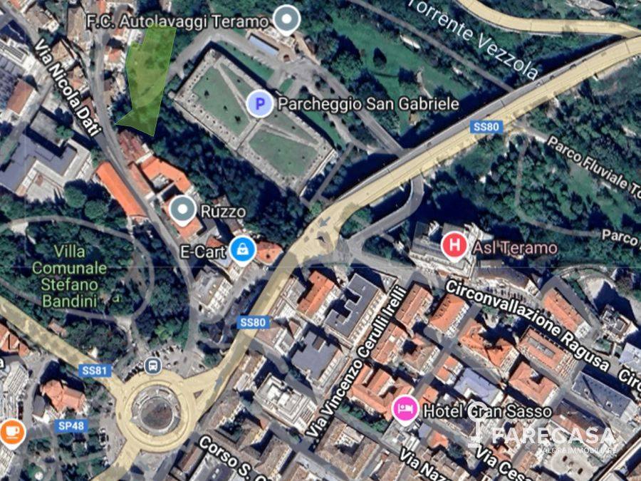 TERAMO CENTRO: A pochi passi da Piazza Garibaldi, proponiamo in vendita terreno pianeggiante di circa 1.400 mq., di cui 1.100 edificabili, adiacente al Parco Fluviale e Parcheggio San Gabriele.