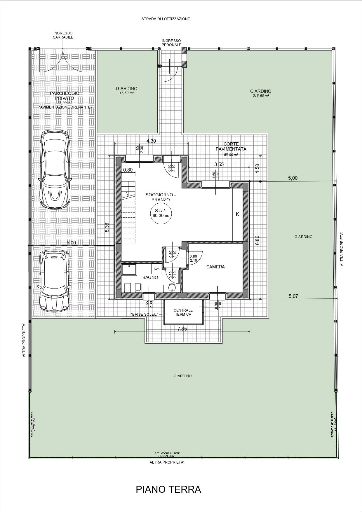 Lipotesi progettuale prevede la costruzione di unabitazione di 120 mq disposti su due livelli: Piano terra: ampio soggiorno con angolo cottura, una camera matrimoniale e un bagno.