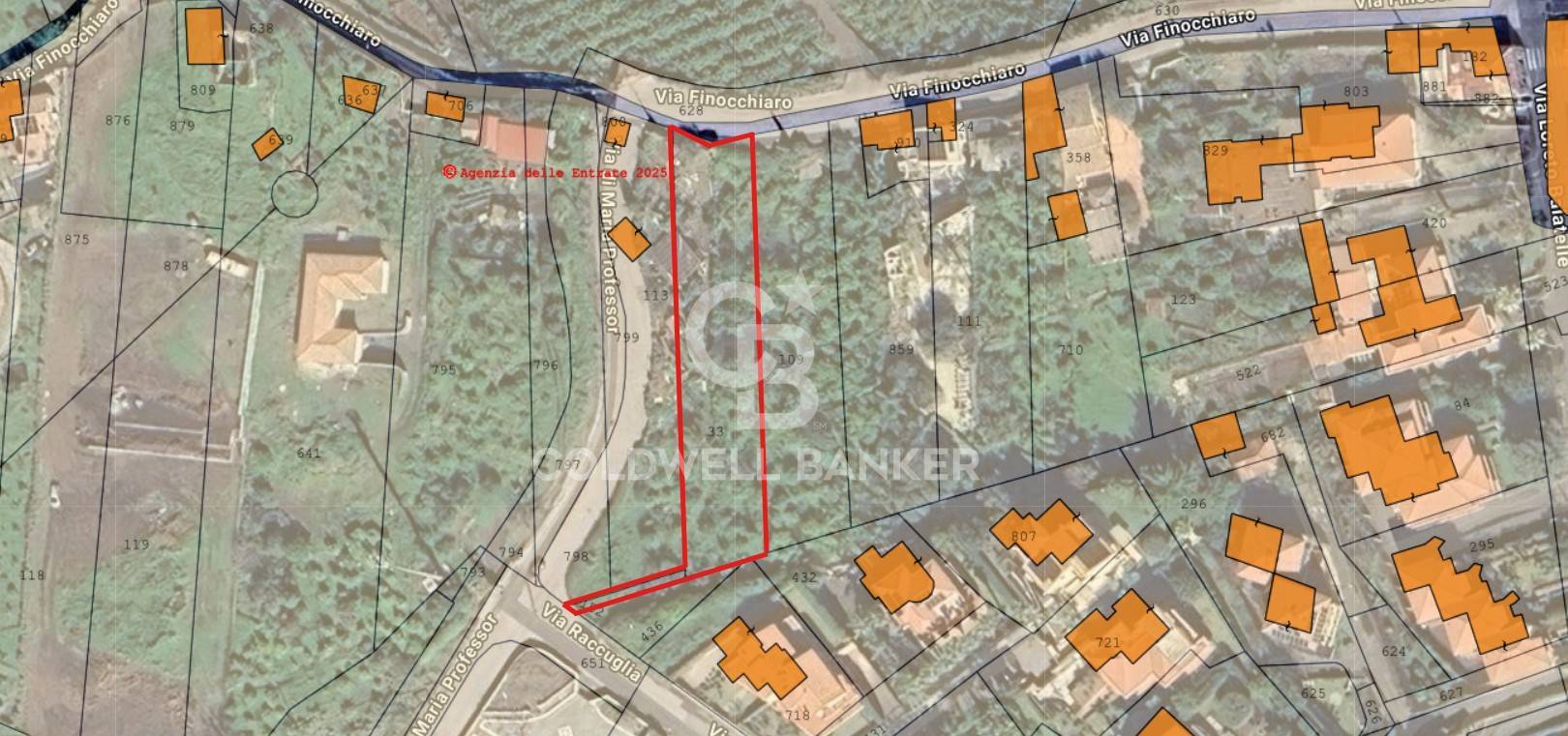 Il lotto si estende su una superficie complessiva di circa 1.361 mq. Secondo il Certificato di Destinazione Urbanistica rilasciato dal Comune di Acireale larea ricade allinterno della Zona Territoriale Omogenea Zona da Rielaborare del vigente Piano Regolatore Generale.