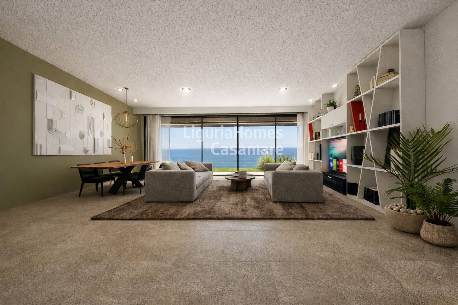 Gli esterni saranno caratterizzati da un giardino ad ampie fasce tipicamente liguri mentre una piscina sar antistante la casa. La vista su Imperia e sul mare davvero spettacolare ed sicuramente il tratto distintivo di questa fantastica propriet.