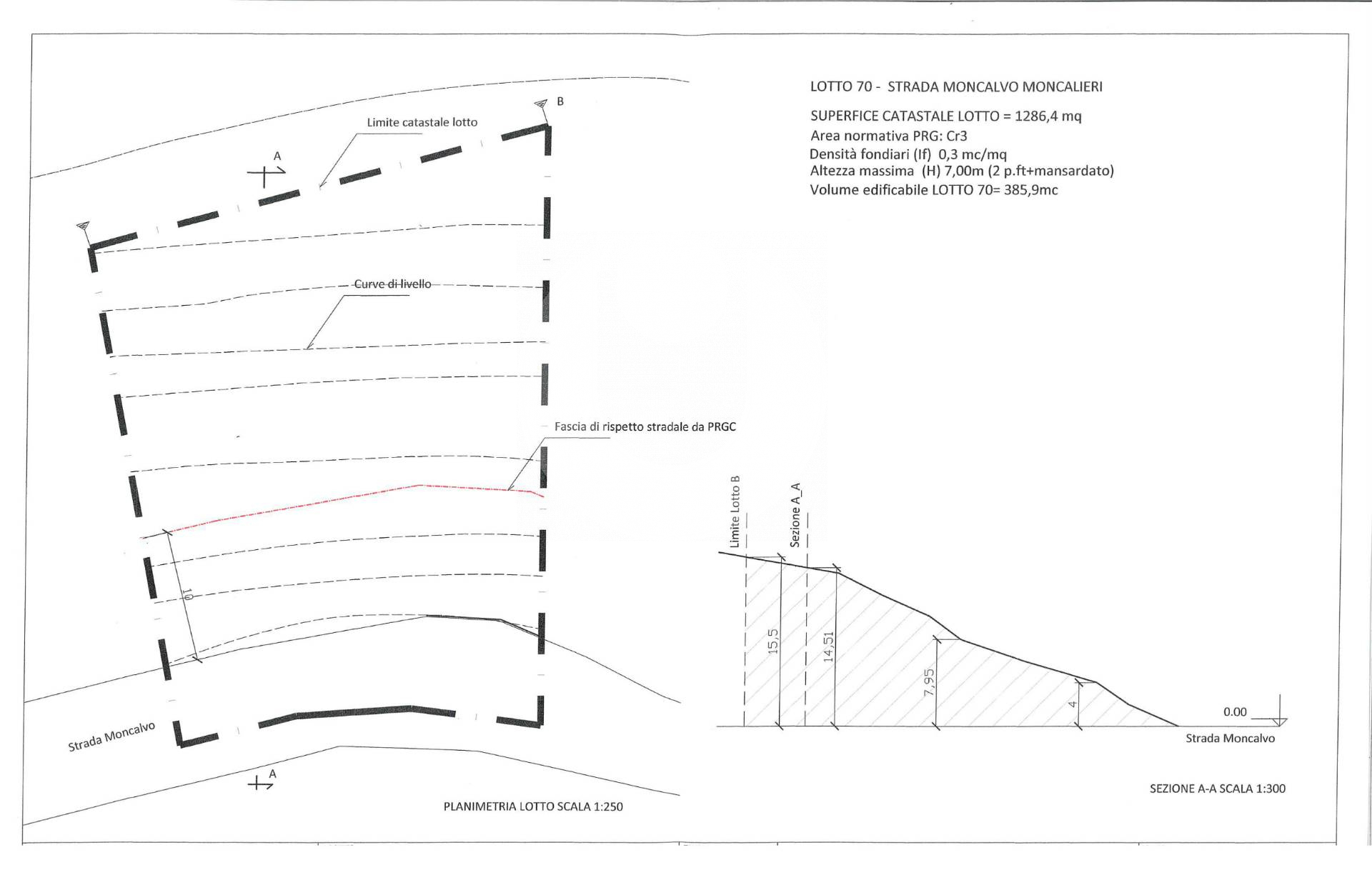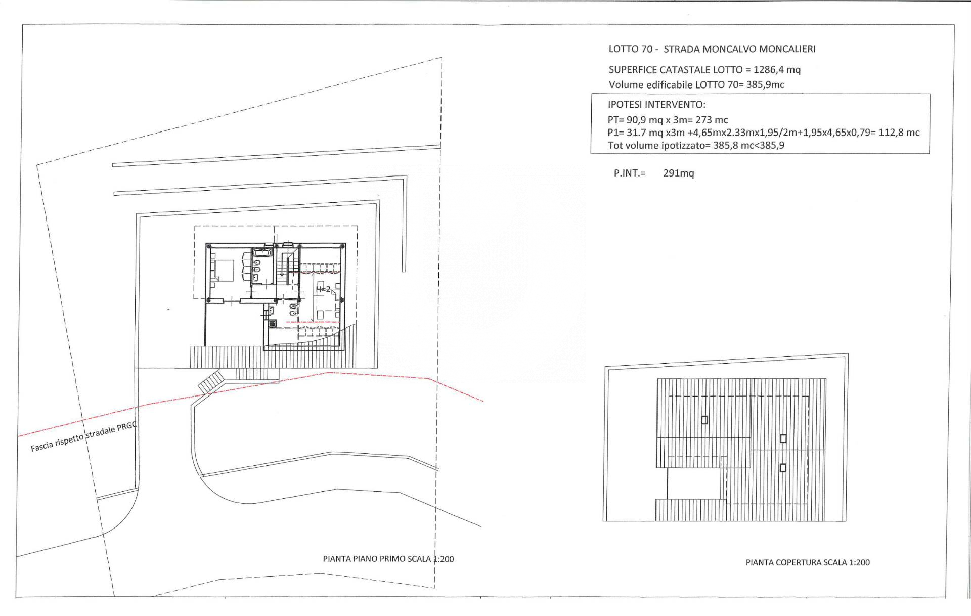 Moncalieri, in zona collinare, terreno di circa 1.290 mq, di cui densit fondiaria 0,3 mc, quindi volume edificabile 385,9 mc. Esiste una proposta di progetto preliminare, con relativo studio di fattibilit, per la realizzazione di una villa unifamiliare su tre livelli.