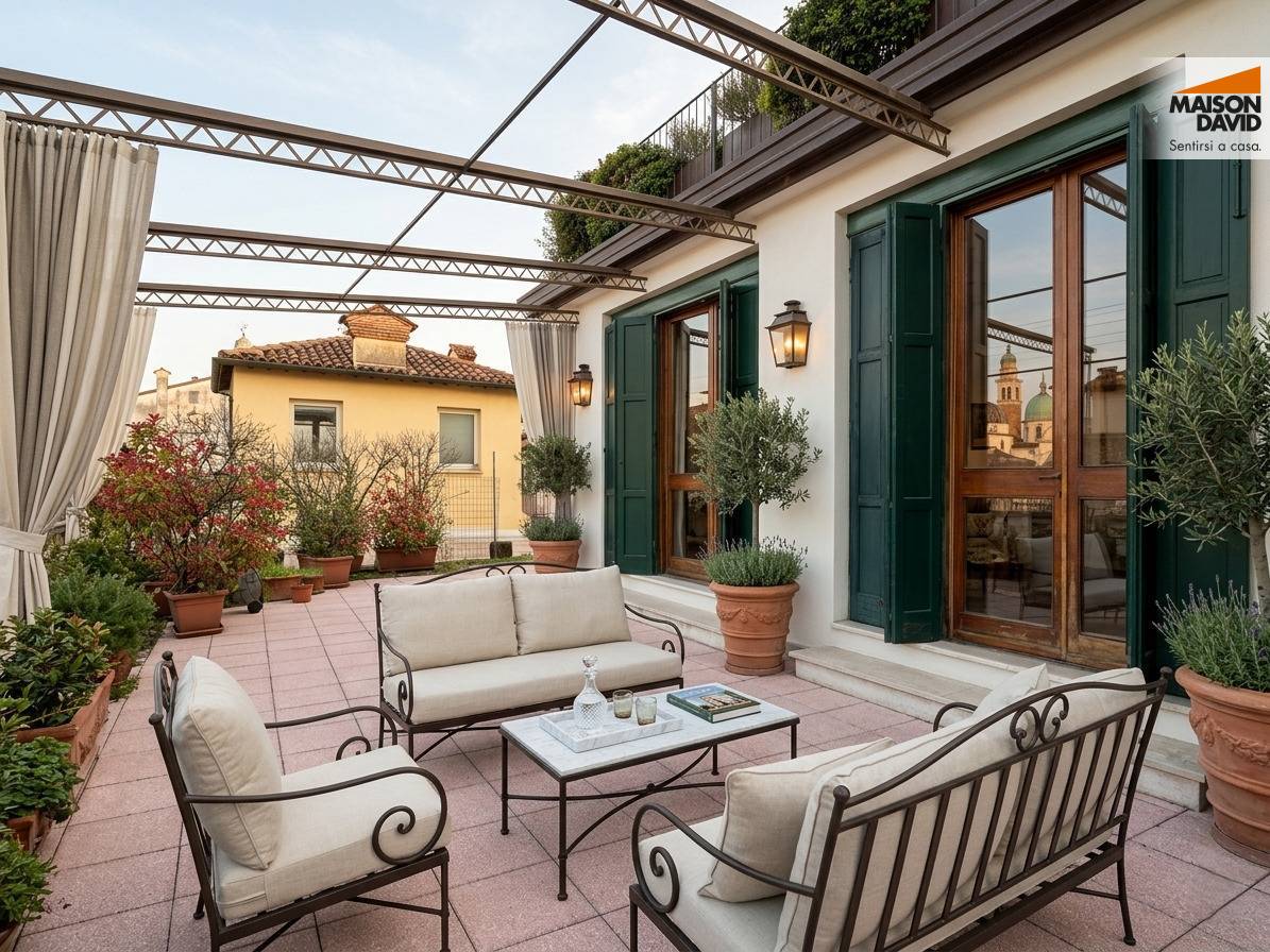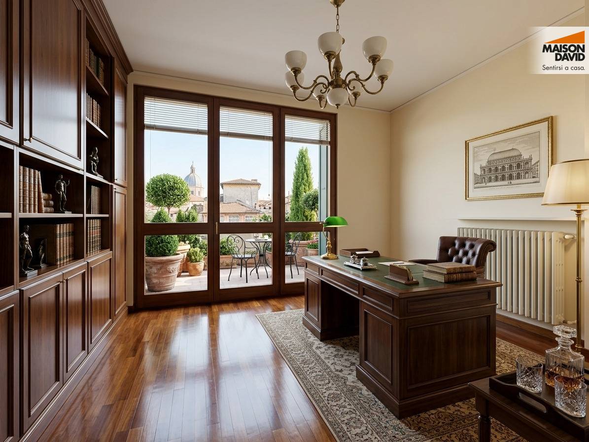 Un terrazzo unico con vista iconica Fiore allocchiello della propriet lo spettacolare terrazzo abitabile di 140 mq: uno spazio esclusivo dove la vista si apre sui tetti del centro storico e si estende fino a Monte Berico, regalando scorci suggestivi in ogni momento della giornata.