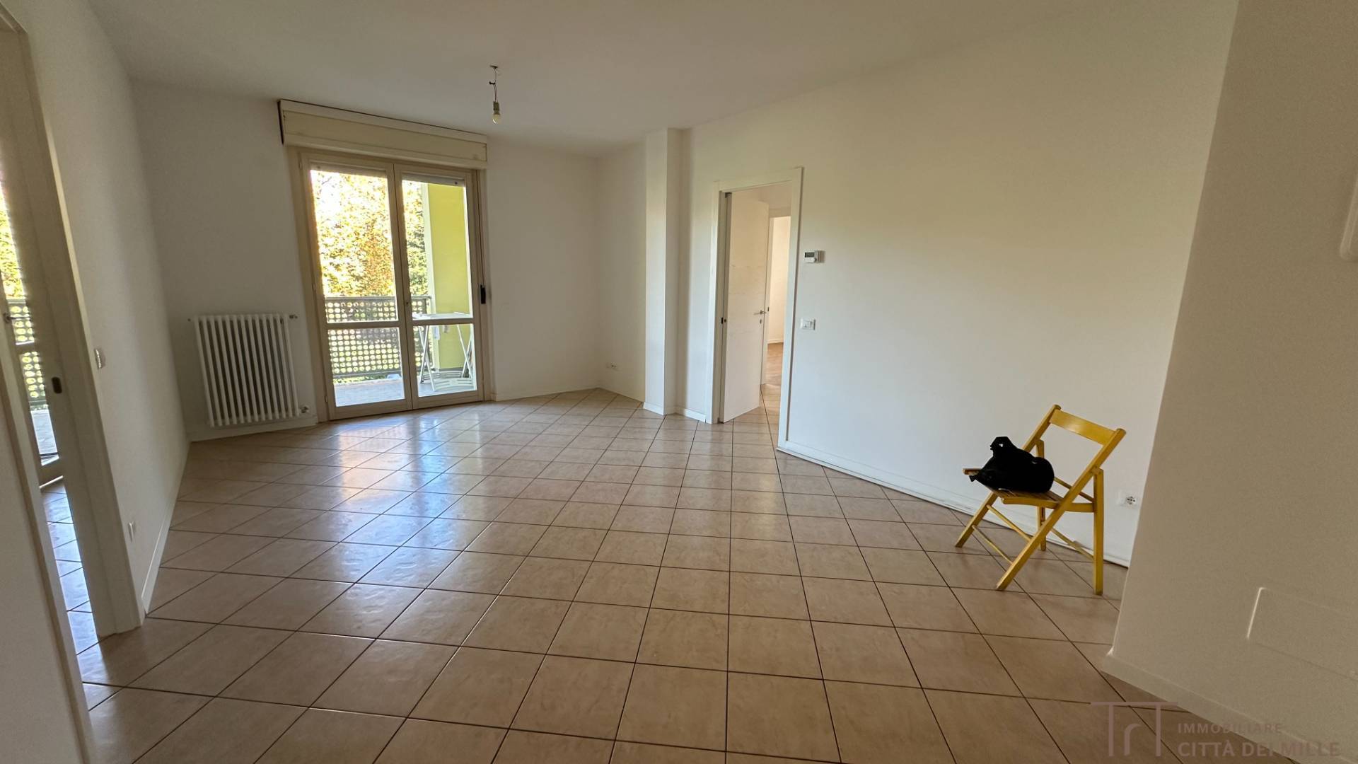 Appartamento TOTALMENTE VUOTO, composto da: soggiorno, cucina separata, disimpegno, due bagni, due camere da letto, balcone ed ampio box. Riscaldamento termoautonomo, spese condominiali mensili ? 50 oltre al canone.