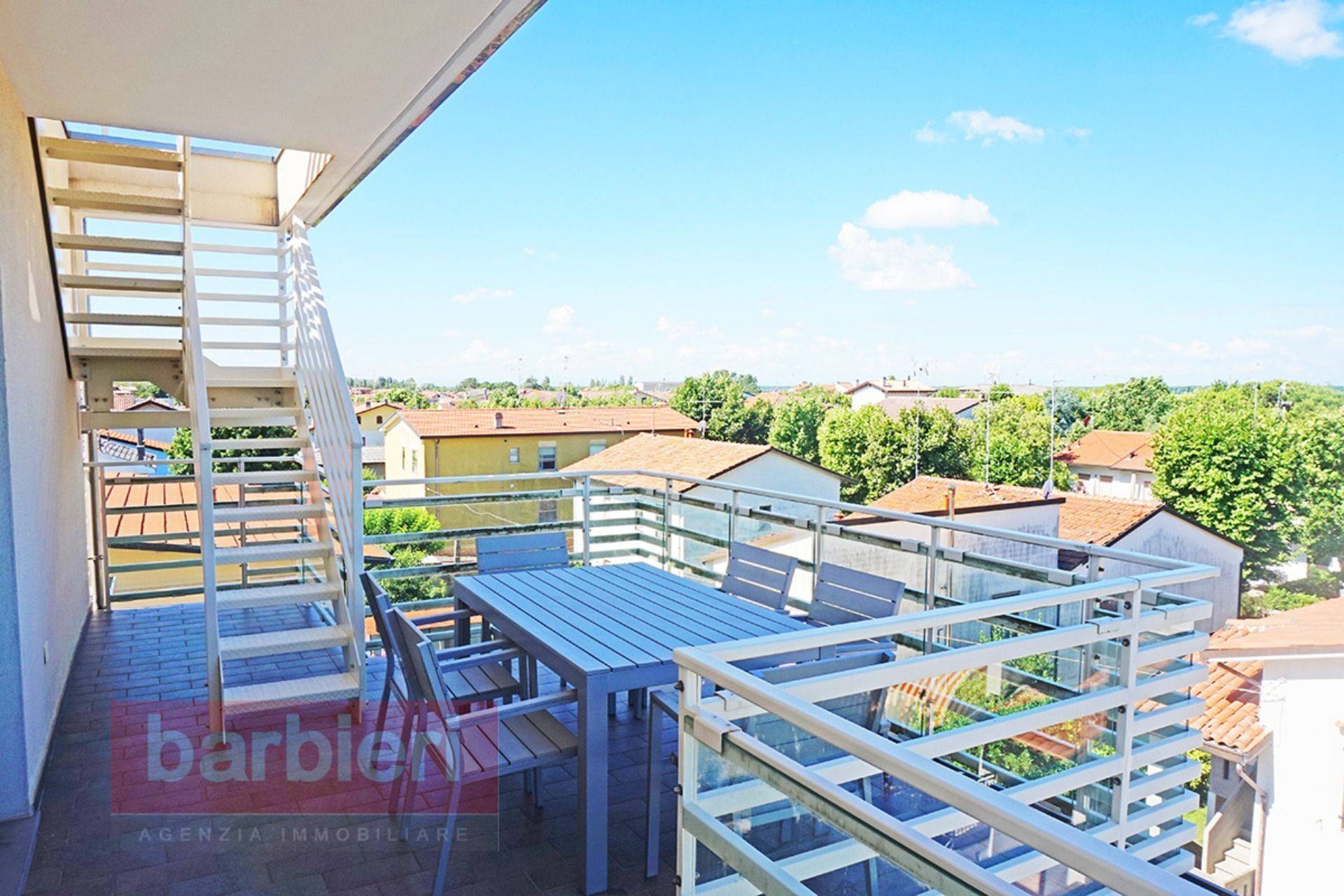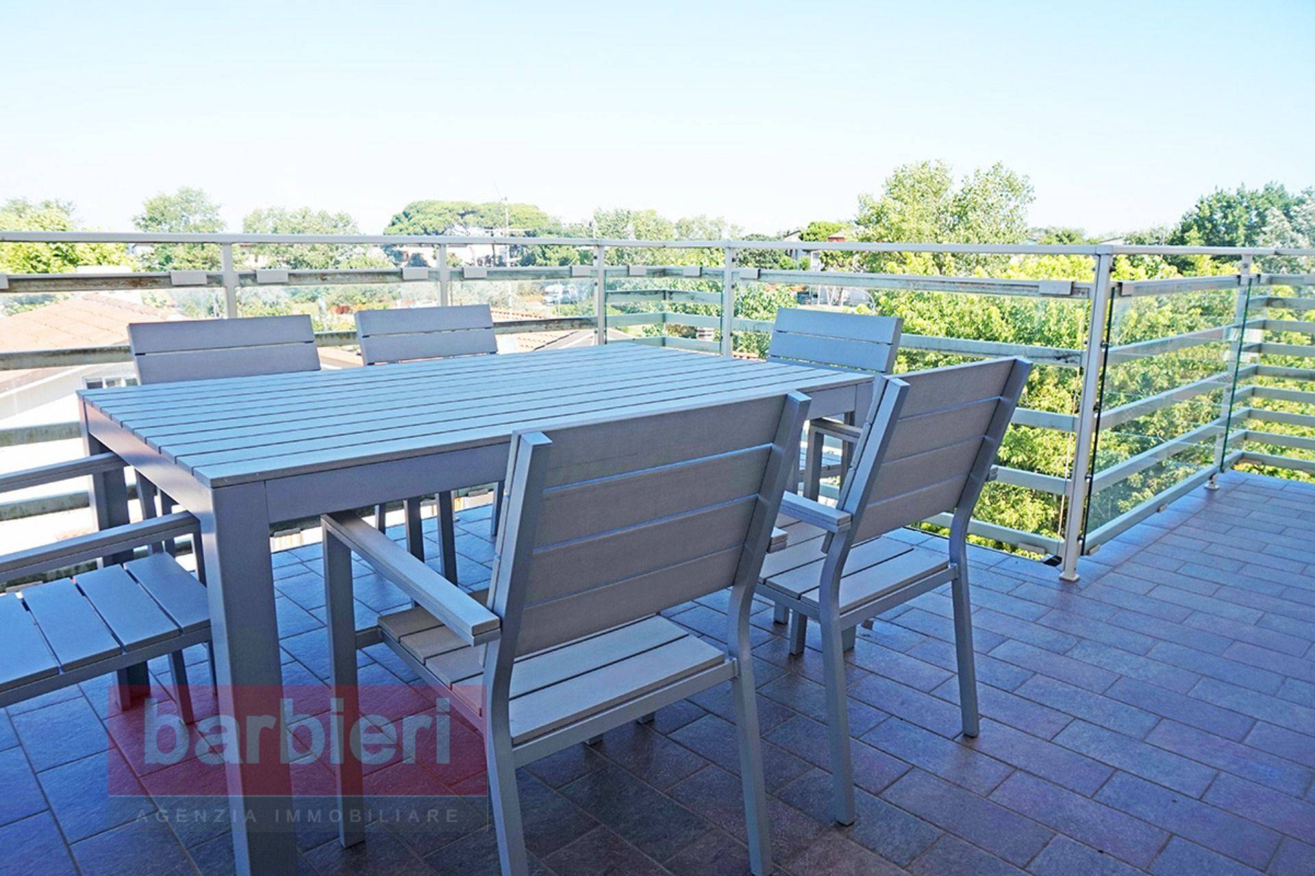 Affittiamo a Casal Borsetti, vicinissimo al mare e al porto turistico, in piccolo complesso condominiale con ascensore e di nuova costruzione, attico con vista mare. L'immobile, disposto su due livelli, composto da soggiorno con angolo cottura, camera da letto, studio, disimpegno, bagno e ampi balconi sui tre lati con accesso diretto da ogni ambiente.