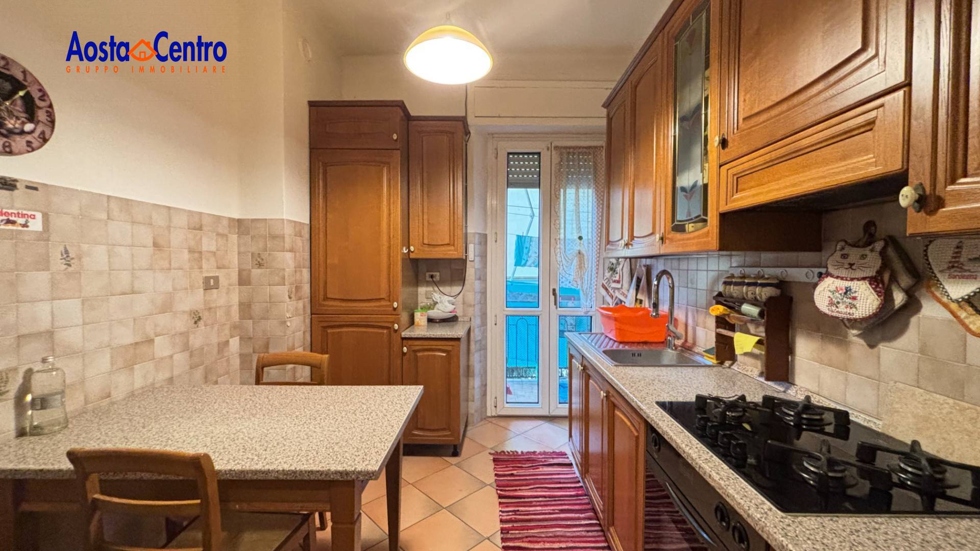 Aosta-Via 4 Novembre Proponiamo in vendita, in eslusiva, sulla via che porta a piedi al centro storico e che collega la zona alla stazione ferroviaria e alla stazione dei pullman, grazioso trilocale posto al piano secondo di un condominio servito da ascensore.