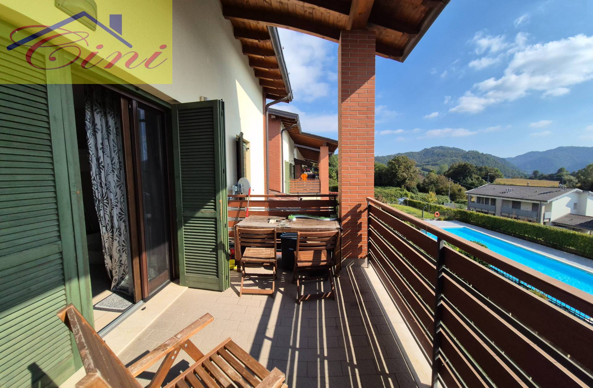 CAPRINO BERGAMASCO ATTICO / TRILOCALE CON BOX DOPPIO RIF.: 70166 In bellissima zona immersa nel verde , proponiamo in vendita signorile trilocale ubicato all'interno di un recentissimo complesso del 2010 dotato di piscina e di pannelli solari fotovoltaici per la elettrificazione delle parti comuni.