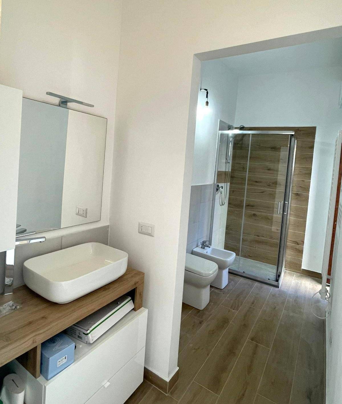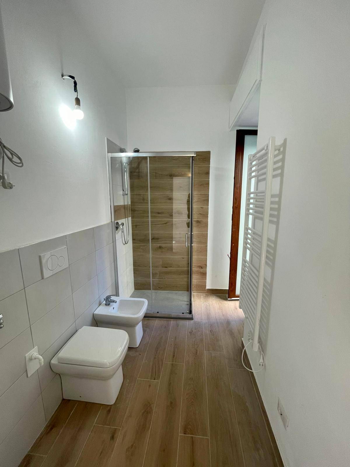 Il bagno, ristrutturato con gusto, dotato di una comoda doccia e di tutti i comfort necessari per il relax quotidiano.