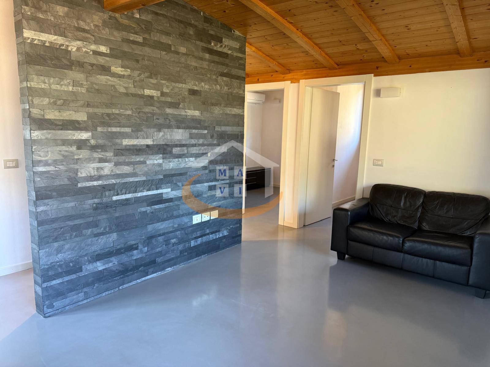 Lappartamento composto da una zona giorno con soggiorno e cucina a vista, due camere da letto, ampio bagno finestrato con Velux e doppio balcone.