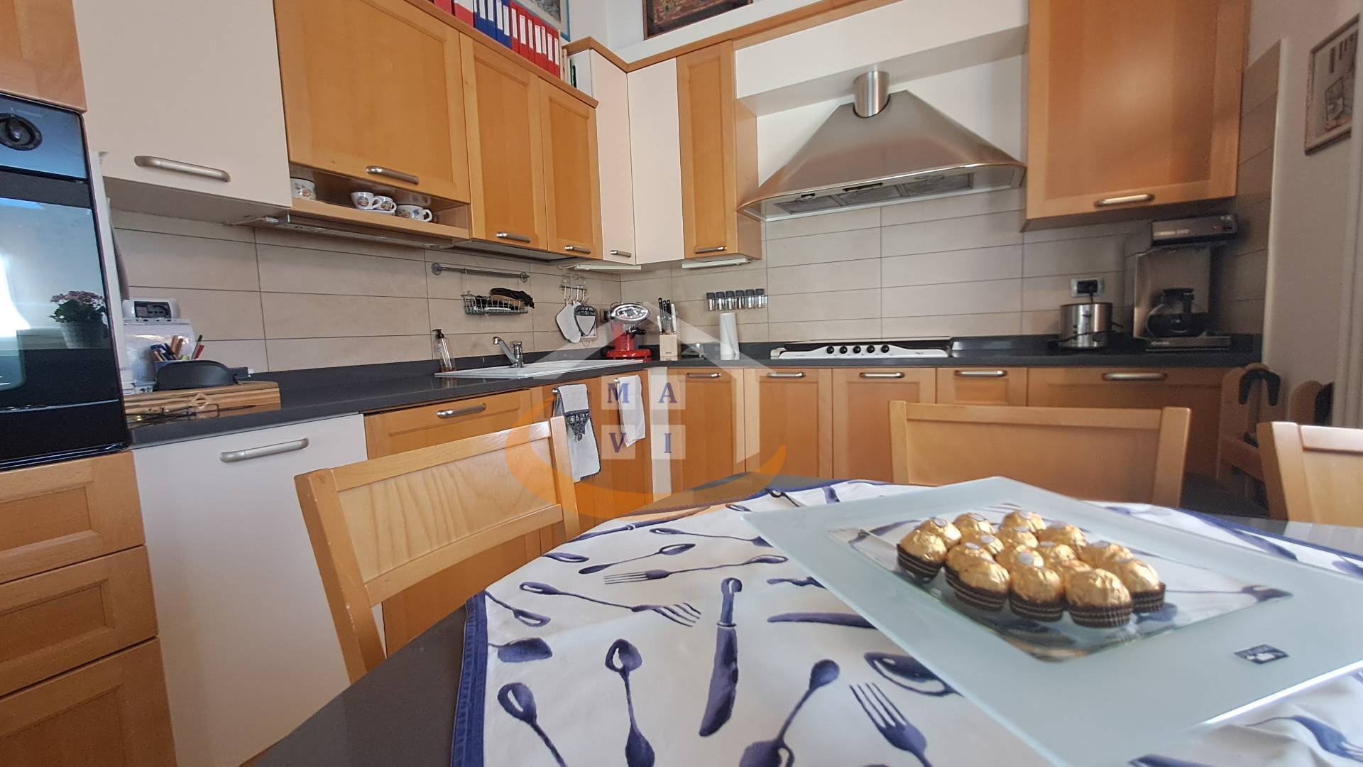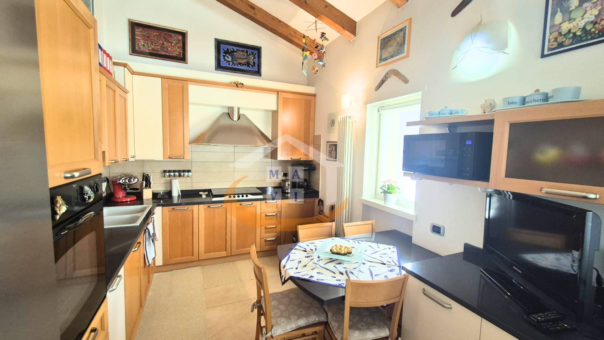 La cucina abitabile e separata dal soggiorno da una grande porta a vetri, soluzione che consente di dividere gli ambienti alloccorrenza senza rinunciare alla luminosit.