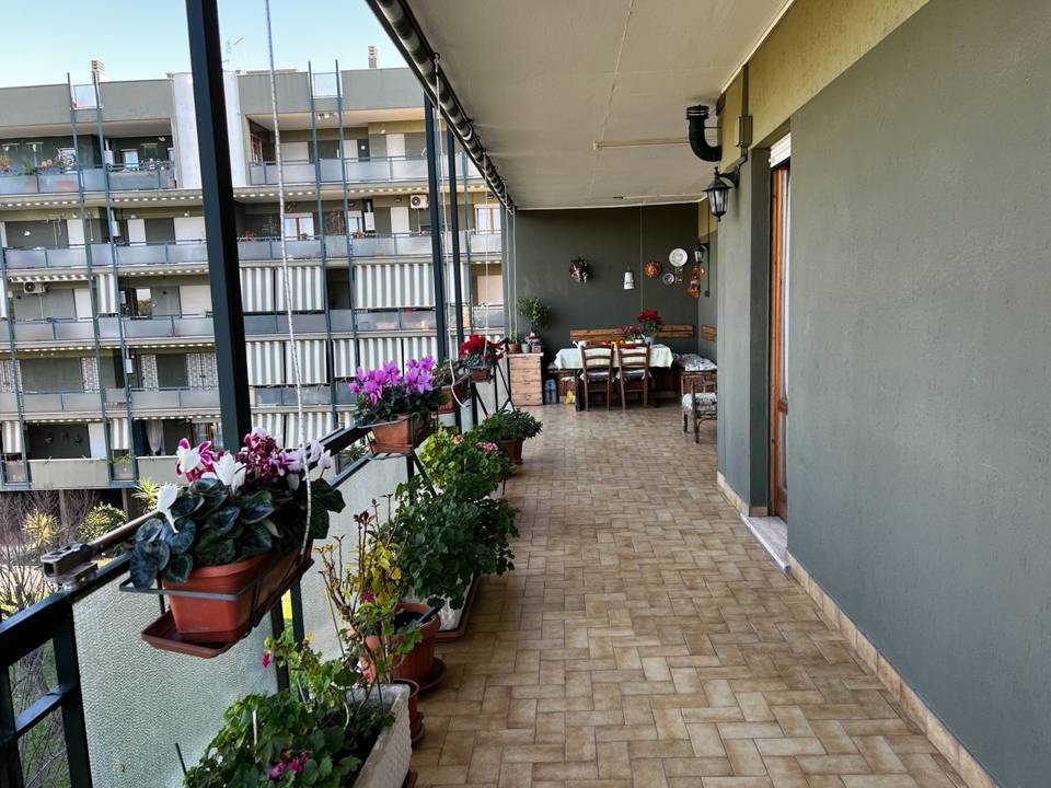 Lingresso accogliente conduce a un luminoso salone di ampia metratura, con accesso diretto al terrazzo di circa 30 mq, vero valore aggiunto della casa, perfetto per momenti di relax allaperto, pranzi e cene conviviali o per creare una zona verde privata.