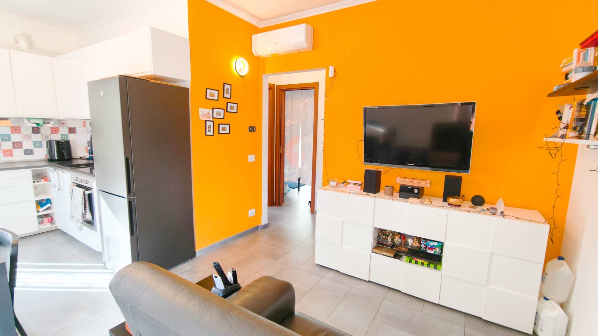 Gli ambienti sono ben distribuiti e funzionali: labitazione si compone di un luminoso soggiorno con angolo cottura, due camere da letto e un bagno.