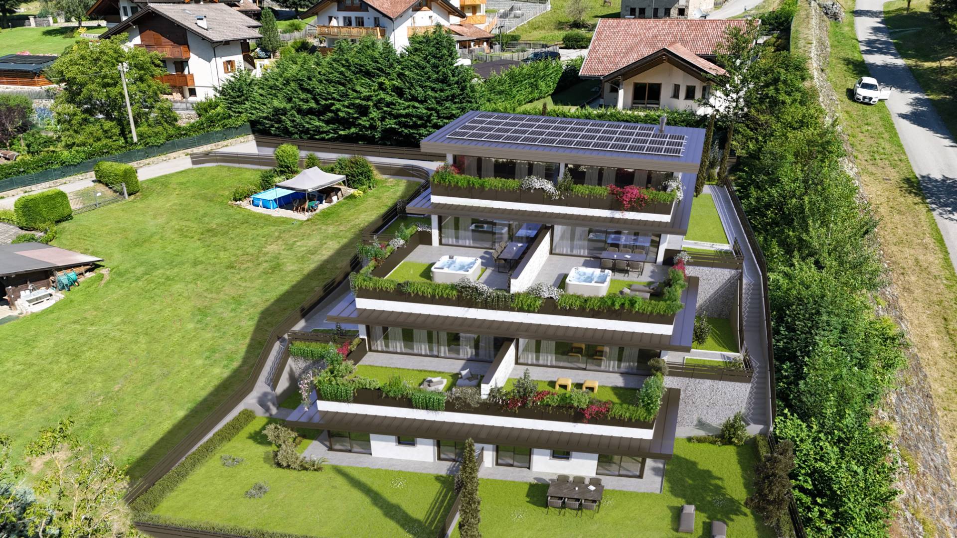 Il complesso composto da sette unit, ogni residenza progettata per offrire un'esperienza di vita moderna, con spazi ampi e luminosi pensati per il massima confort.