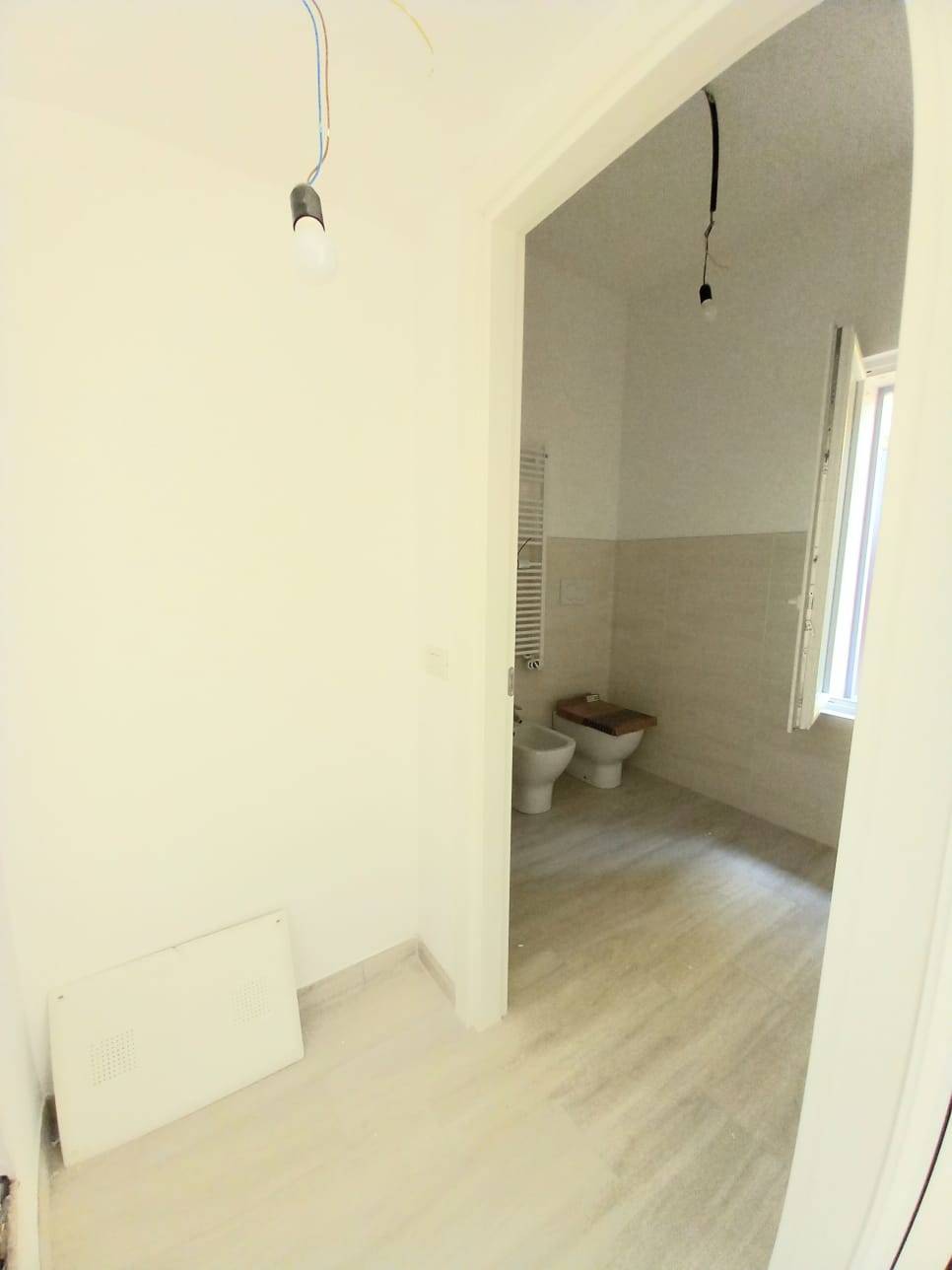 P. terra PORTA BLINDATA, ingresso con zona living con cucina a vista, disimpegno e bagno.