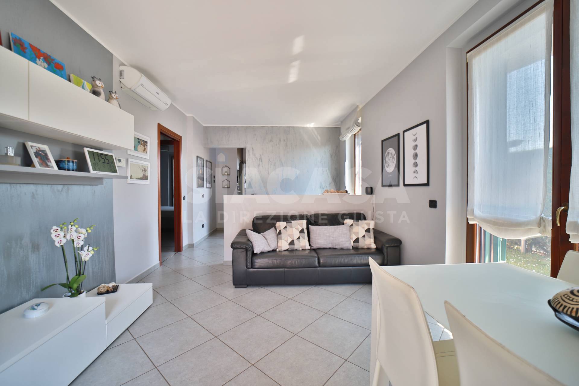 Lappartamento, con ingresso indipendente, cos composto: soggiorno, cucina abitabile, camera matrimoniale, bagno con vasca e camera singola; tramite una comoda scala si accede al piano interrato dove troviamo la taverna con la lavanderia ed il box singolo collegato direttamente.