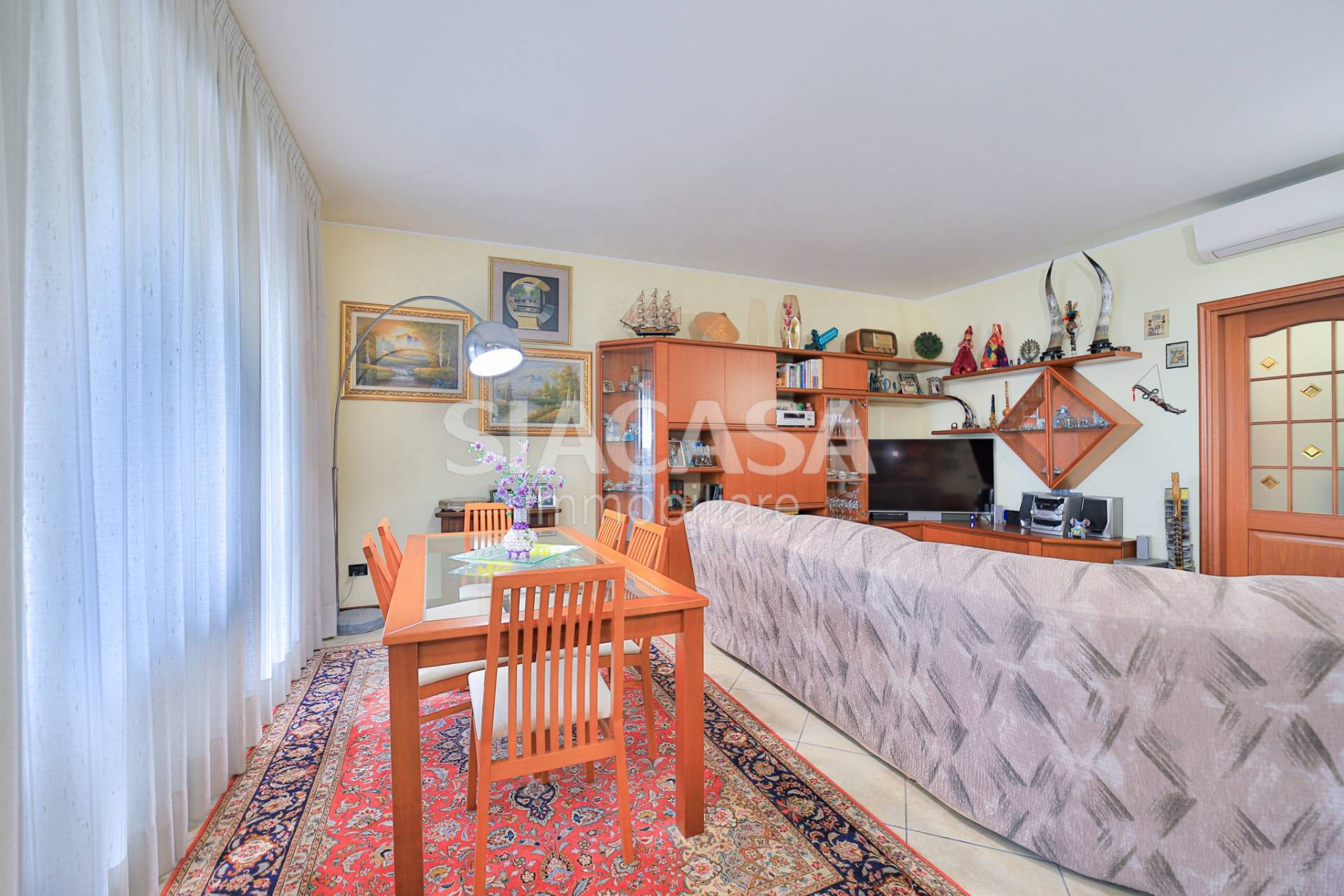 Lappartamento si sviluppa su 113,00mq (solo di casa), ben distribuiti e luminosissimi, grazie alla doppia esposizione con zona giorno esposta ad ovest e zona notte ad est. Gli spazi interni si articolano in: Ampio soggiorno con porta-finestra scorrevole che si apre sul terrazzo coperto di 9,00mq, perfetto per pranzi e cene allaperto, con vista aperta e piacevole esposizione al sole del pomeriggio e della sera (ovest). Cucina abitabile, anchessa con accesso diretto al terrazzo.