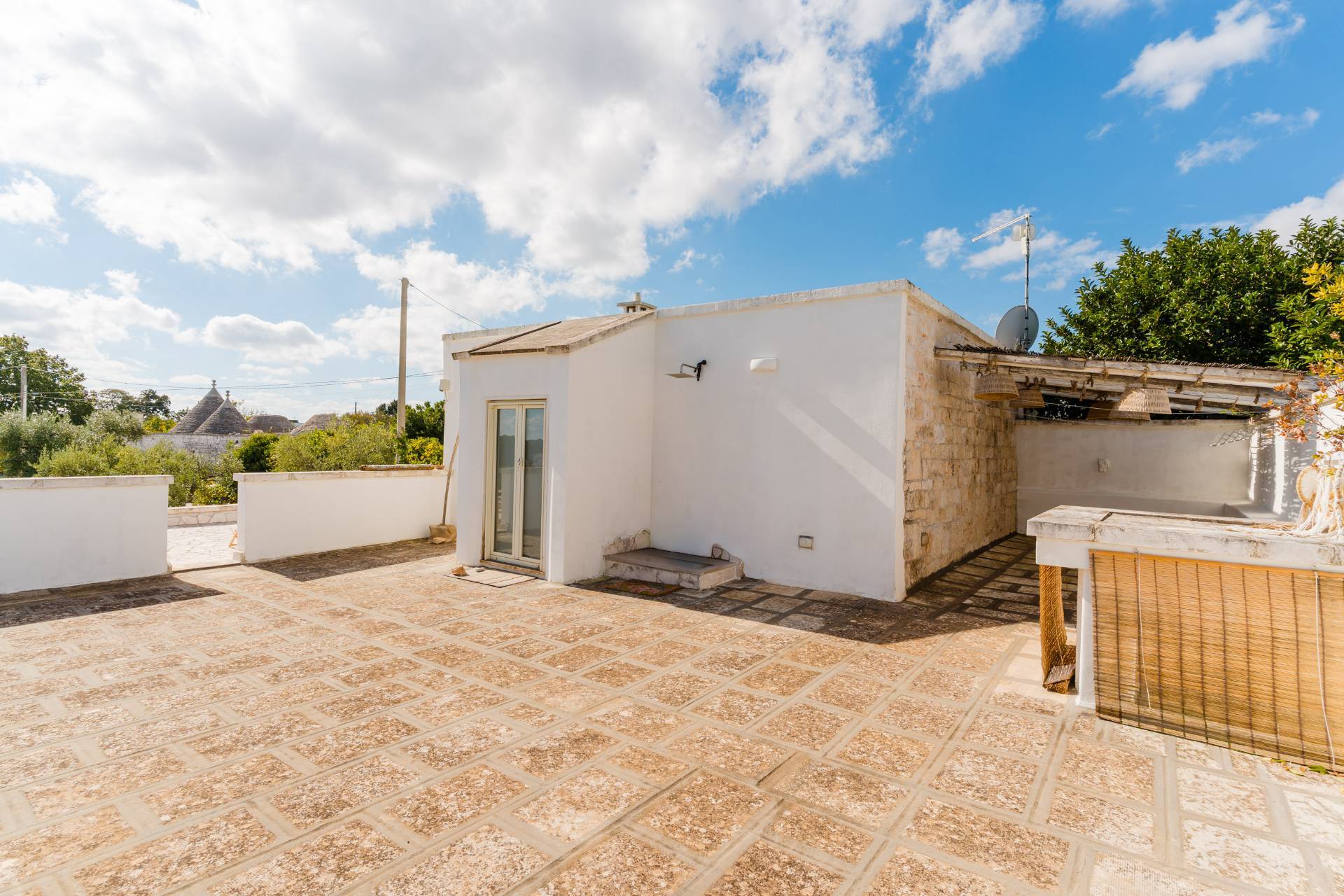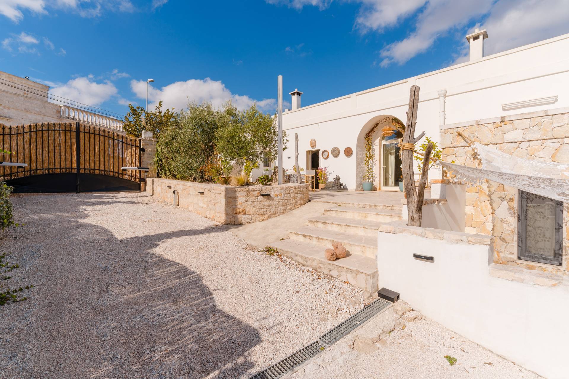 L'affascinante immobile, cui si accede da un viale costeggiato da muretti a secco, tipici della nostra zona, composto da trulli e da un fabbricato di nuova costruzione con terrazza adibita a zona relax.