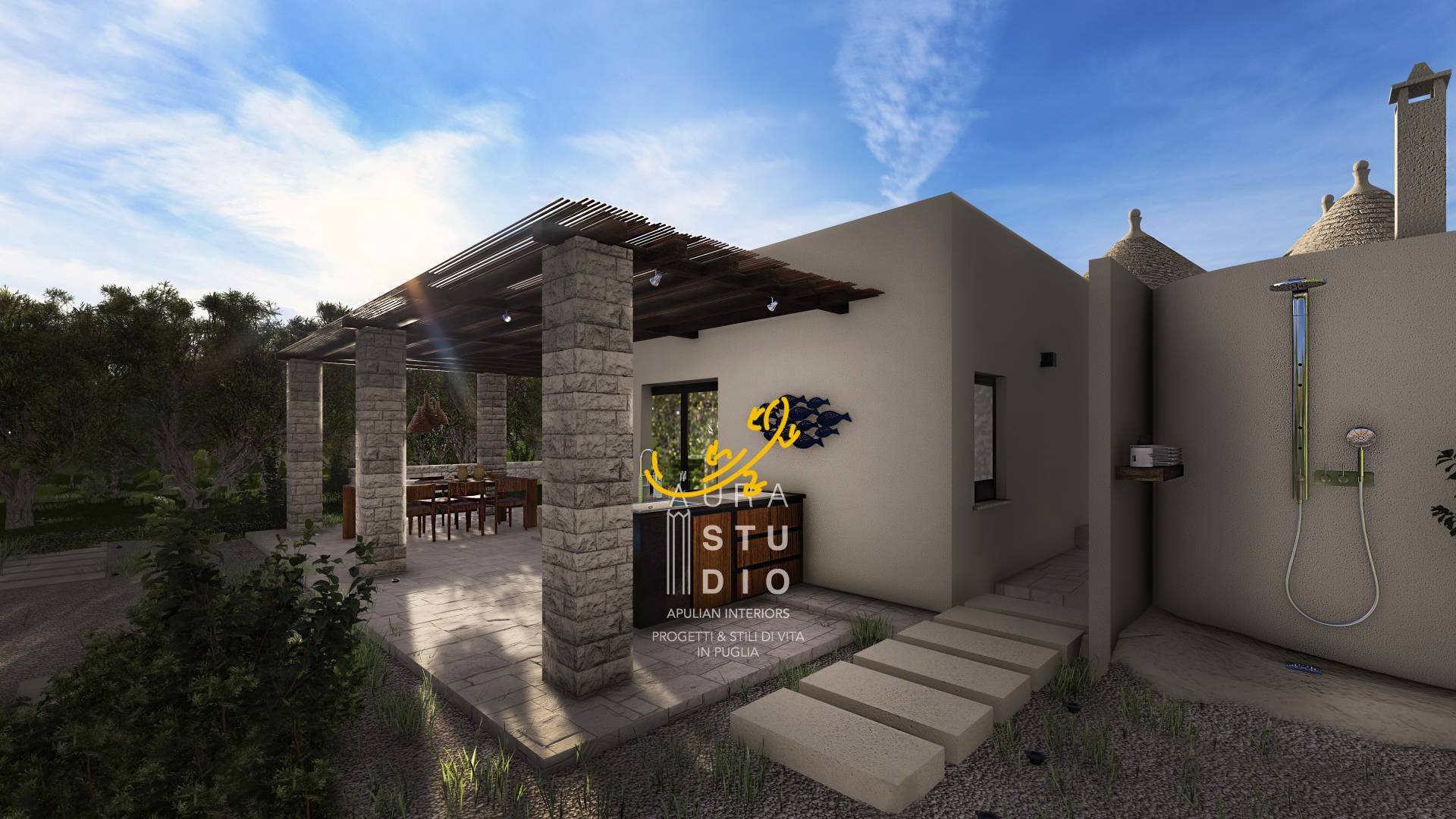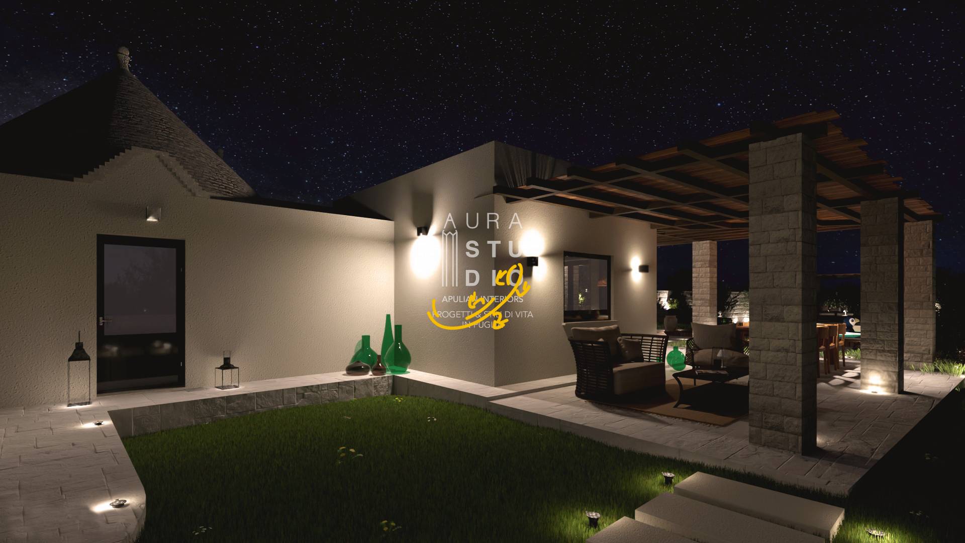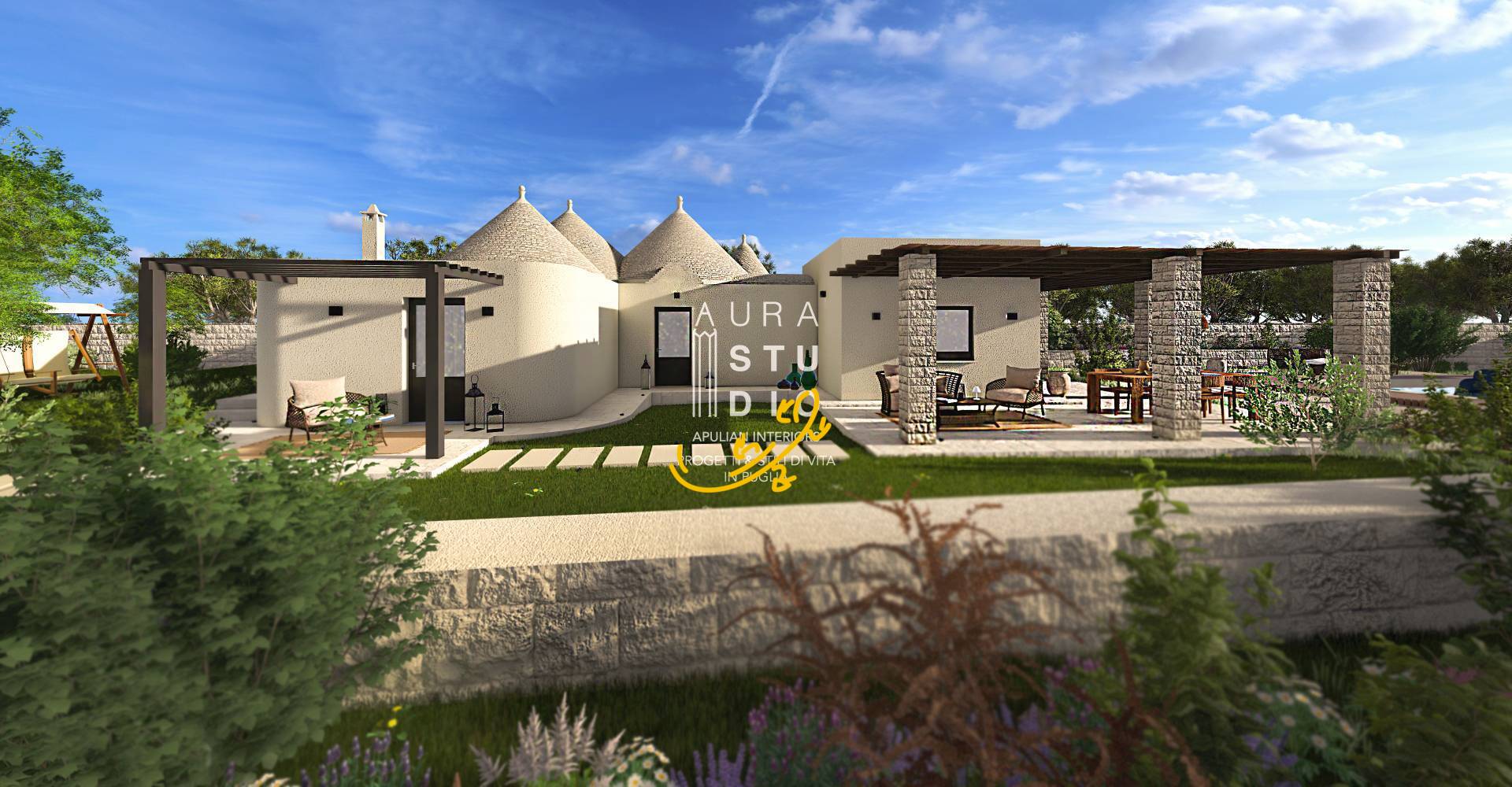 -Ristrutturazione dei trulli esistenti: il progetto prevede il restauro dei trulli esistenti nella Valle d'Itria, con attenzione al rispetto dei materiali e delle tecniche tradizionali.