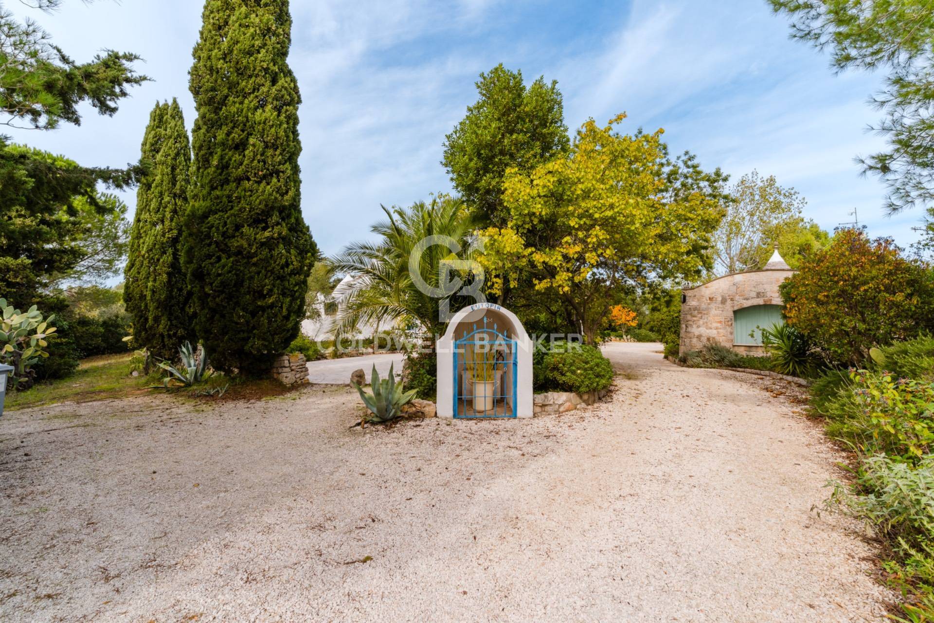 Abbiamo ampi spazi a giardino con un insieme unico di piante e fiori mediterranei: agavi, fichi dindia, olivi, mandorli, gerani, margherite, rose e fresie piante ornamentali, zona parcheggio una piantumazione ad uliveto di circa 26341 mq. con 2 viali di accesso carrabili.