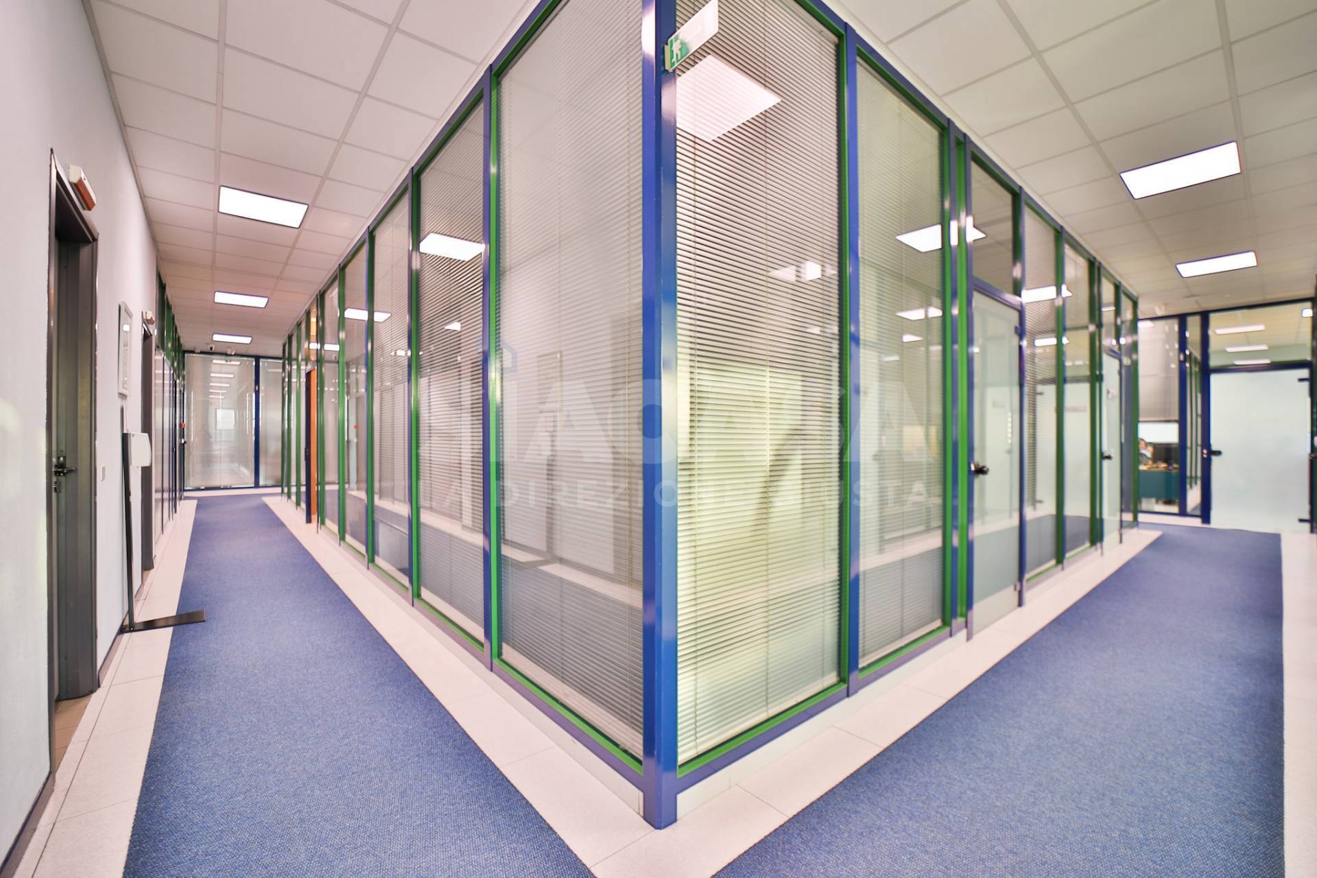 Le ampie vetrate rendono lambiente particolarmente luminoso e sono dotate di veneziane elettriche regolabili, che consentono di modulare la luce naturale garantendo sempre il massimo comfort visivo.