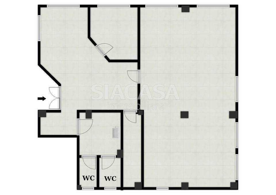 Dispone di un ampio open-space ideale per un ambiente di lavoro dinamico e collaborativo, un ufficio separato perfetto per riunioni o attivit amministrative, un ripostiglio comodo per archiviazione documenti o materiali, doppi servizi funzionali e moderni, e un secondo open-space precedentemente utilizzato come laboratorio, adattabile a varie esigenze operative.