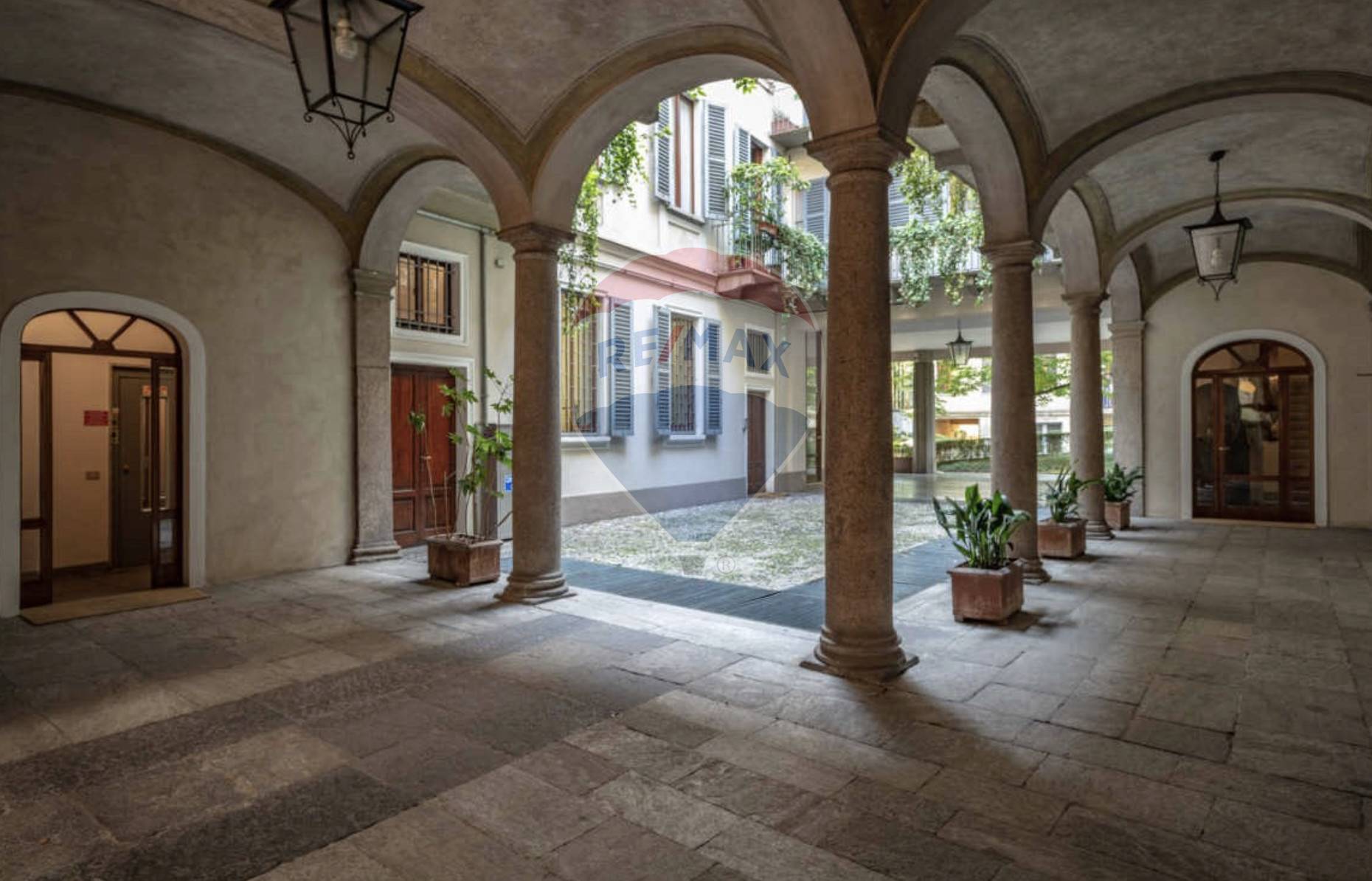 Ledificio a corte sorge su un antico portico colonnato con volte affrescate risalenti al 1700, le coperture sono in coppi stile vecchia Milano e si compone di quattro piani fuori terra e un piano interrato.