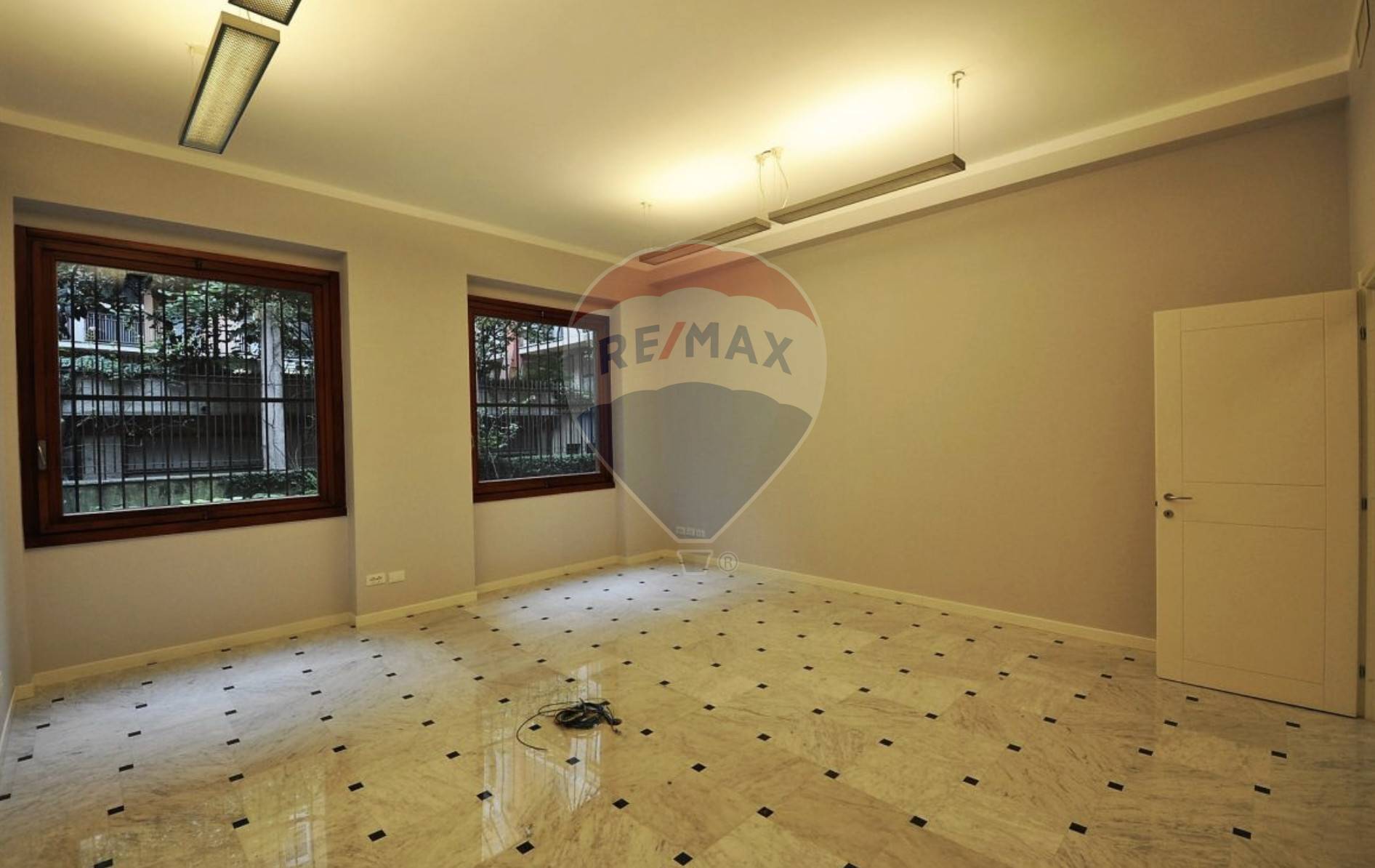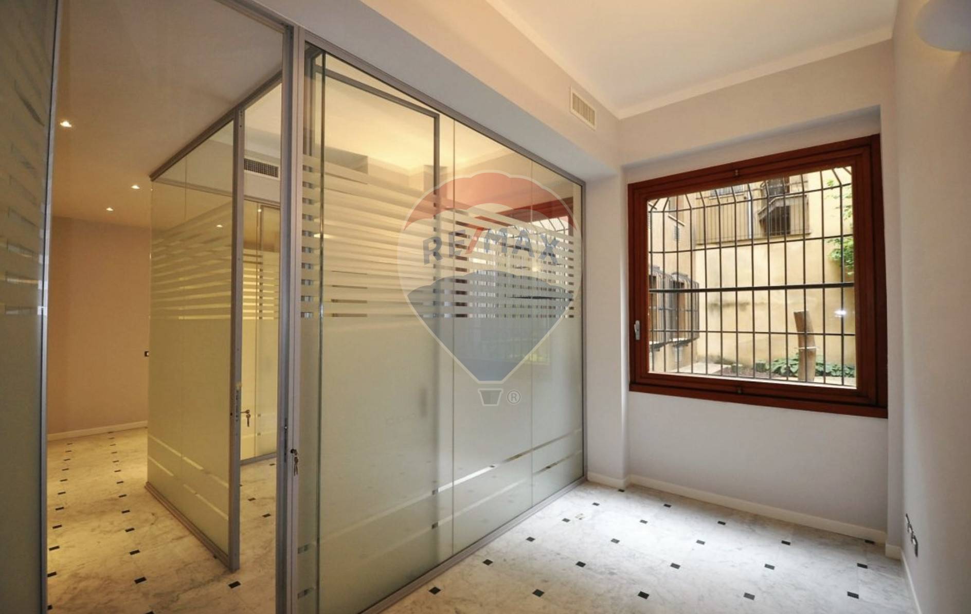 Silenzioso ufficio in affitto di 267 mq. affacciato su giardino interno in Foro Buonaparte 12, Milano (zona Cairoli). LUfficio di rappresentanza ha tre ingressi, pavimenti in marmo, condizionamento ed cablato; suddiviso con un ampio locale open, sala riunioni, 5 grandi locali e 3 bagni.