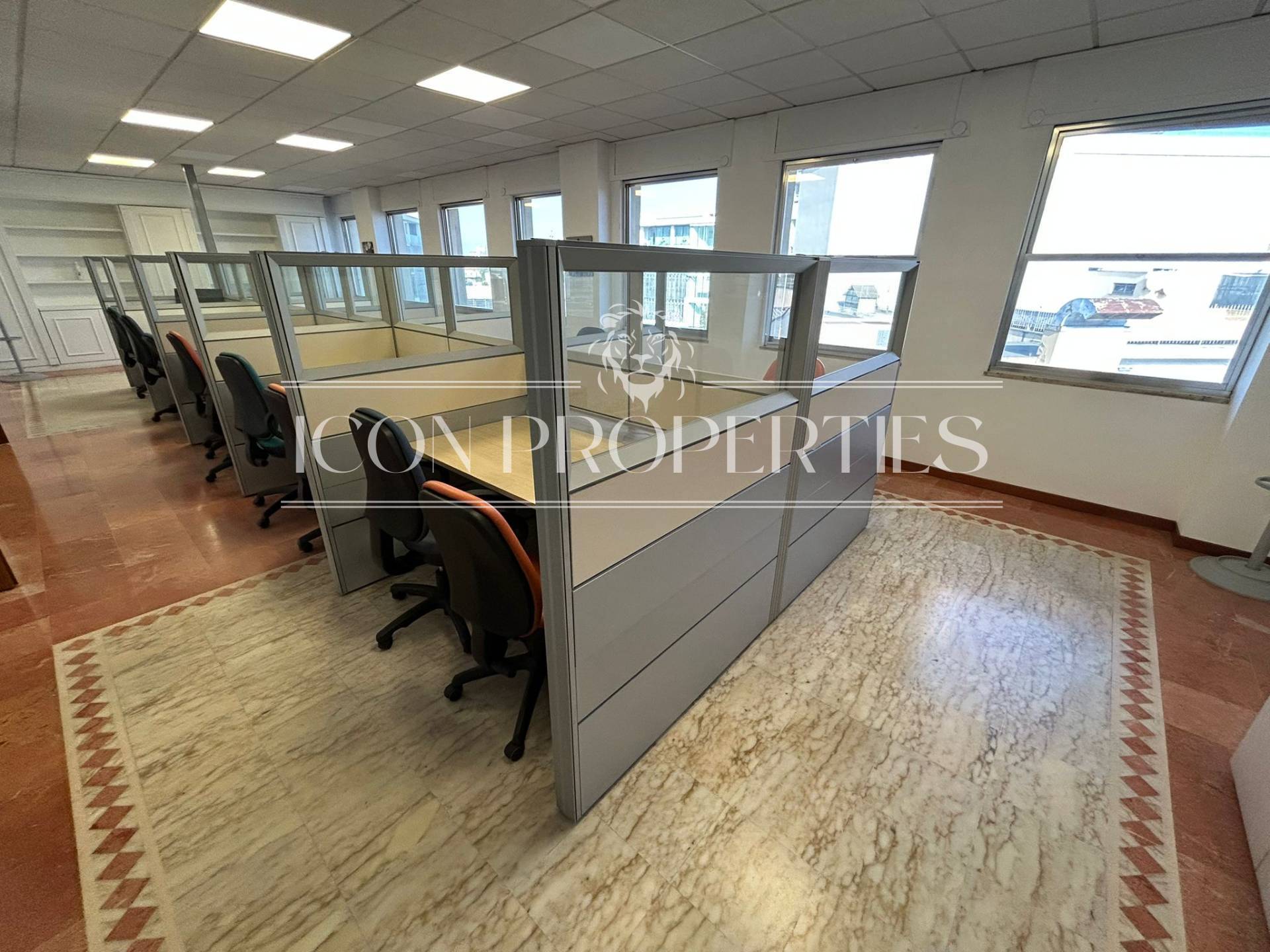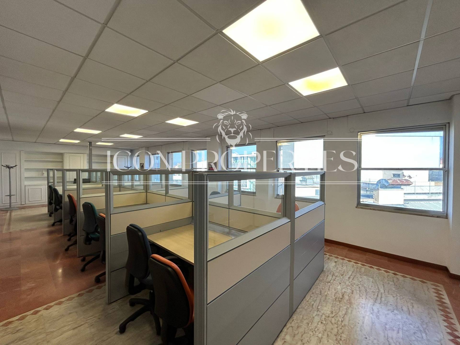 L'ufficio composto da : ingresso , reception, 8 vani e sala riunioni di alta rappresentanza con armadiatura a parete fatta su musira e pavimentazione in marmo, quattro servizi divisi in bagni uomo, donna e diasabili e locaale tecnico.